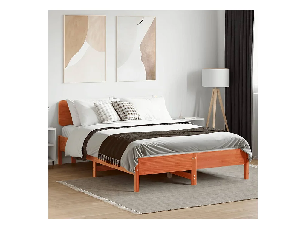 Cadre de lit sans matelas cire marron 120x190cm bois pin massif