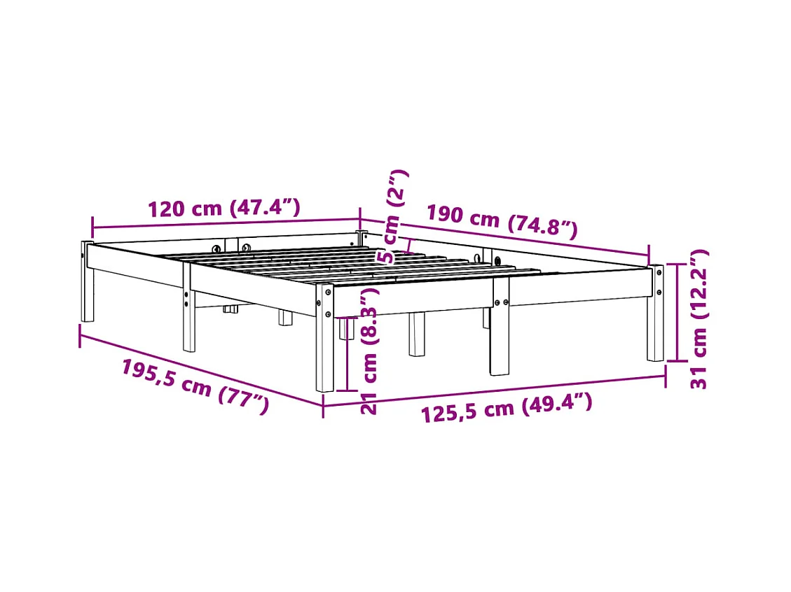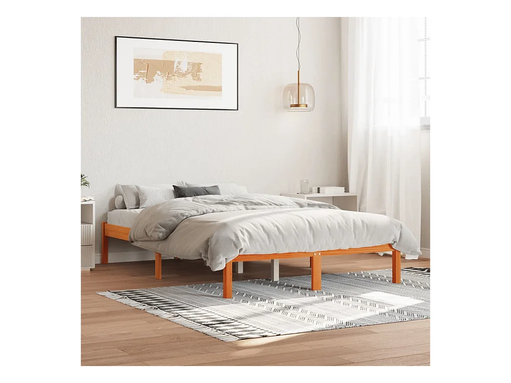 Cadre de lit sans matelas cire marron 120x190cm bois pin massif