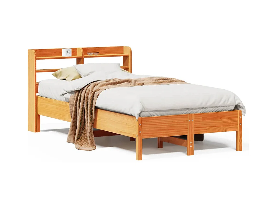 Cadre de lit et tête de lit cire marron 120x200 cm bois de pin