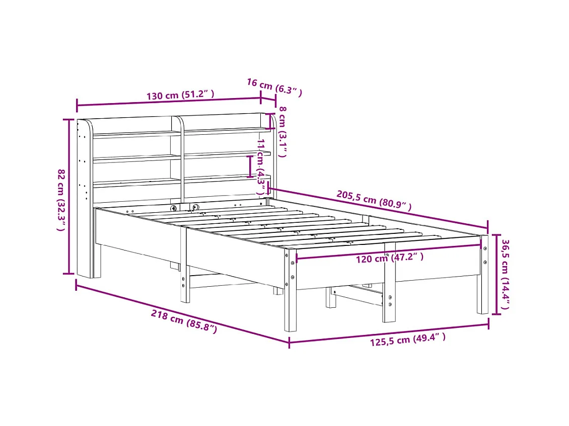 Cadre de lit sans matelas 120x200 cm bois de pin massif