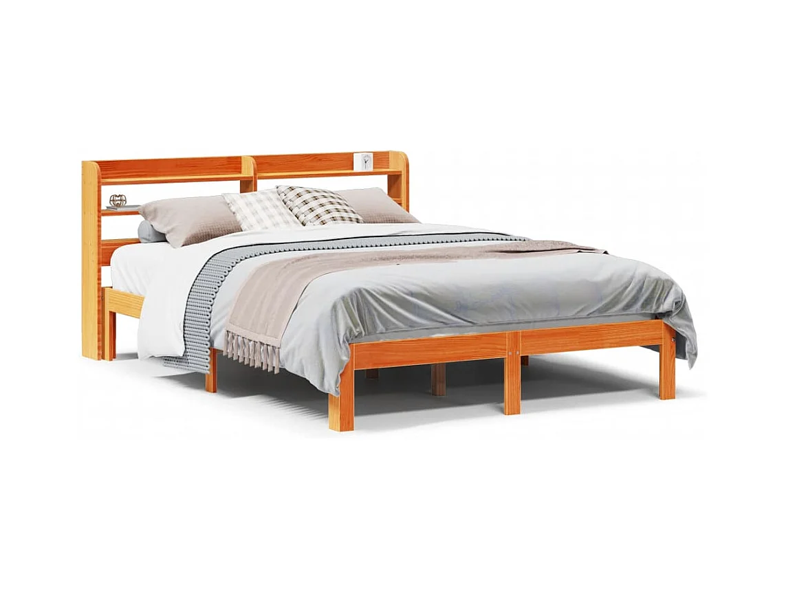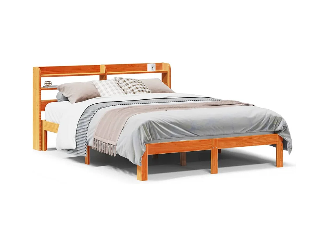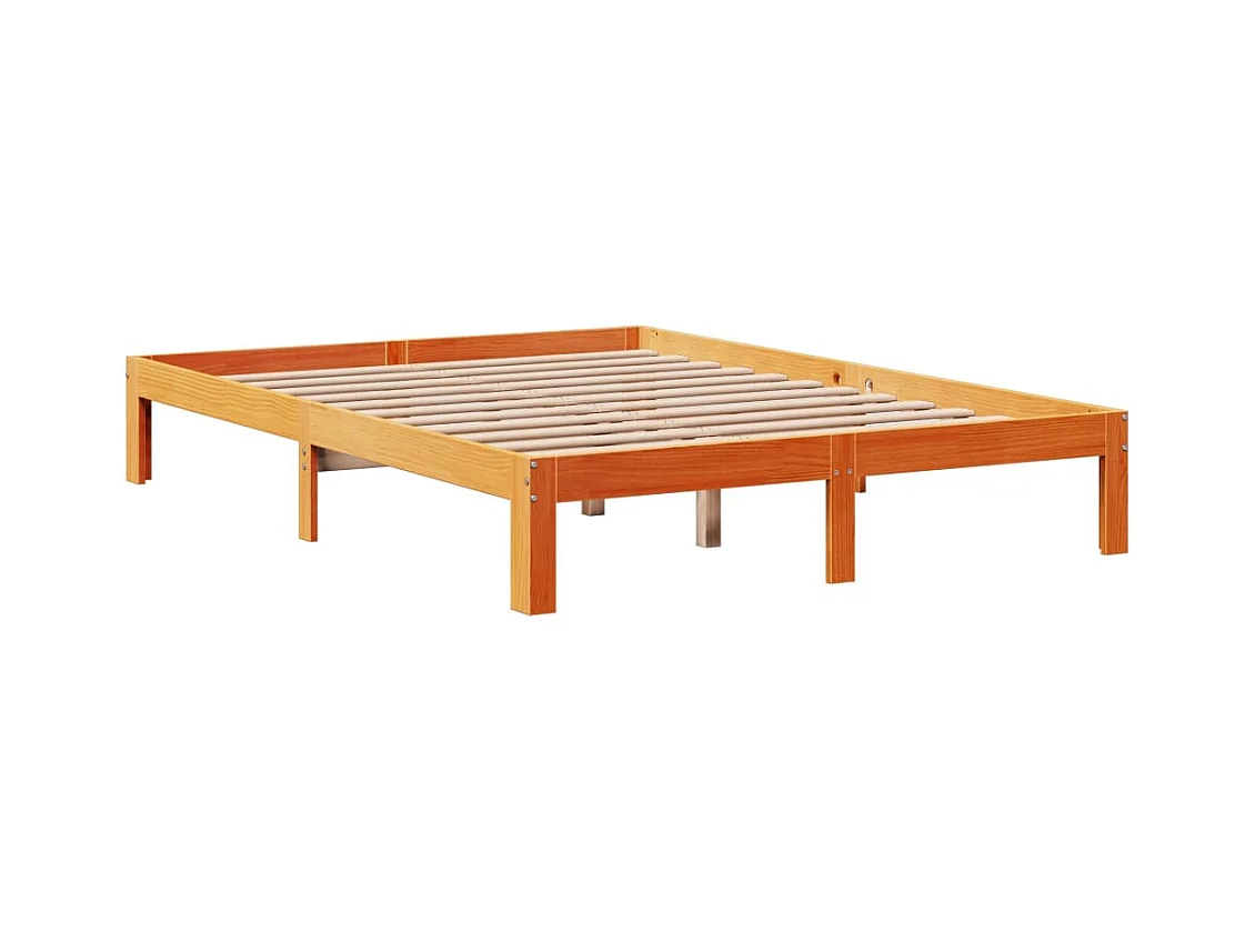 Cadre de lit sans matelas cire marron 135x190cm bois pin massif