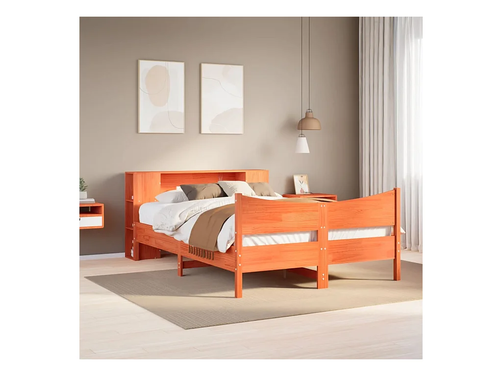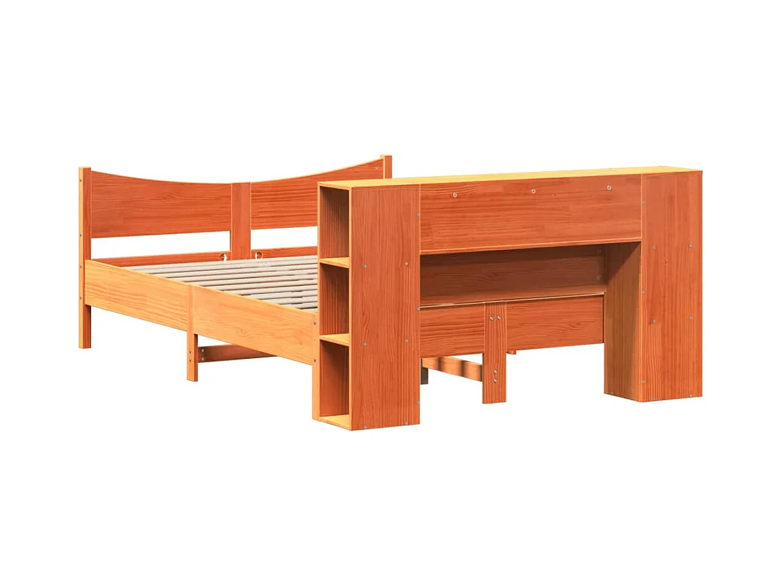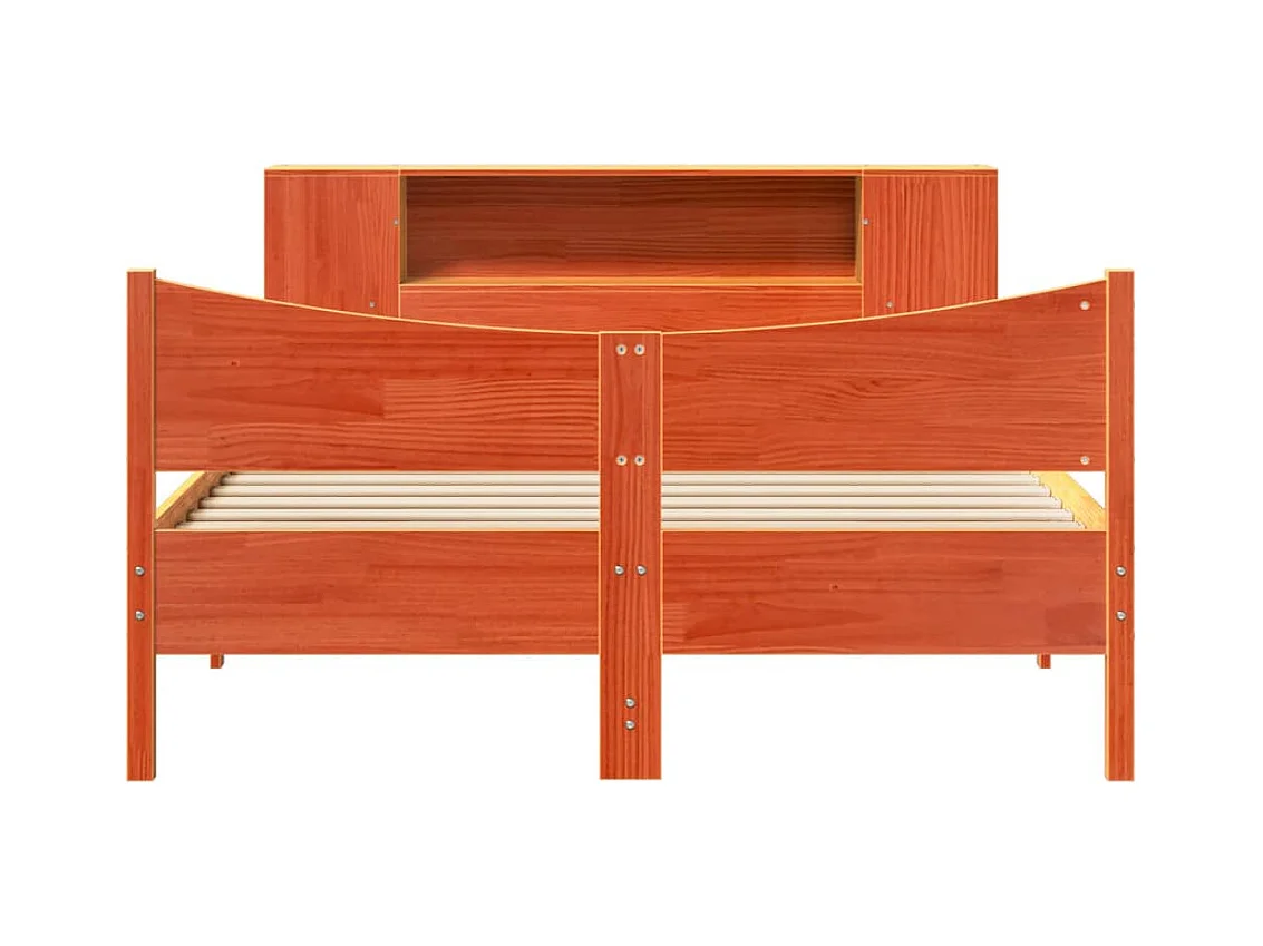 Lit bibliothèque sans matelas cire marron 140x200 cm pin massif