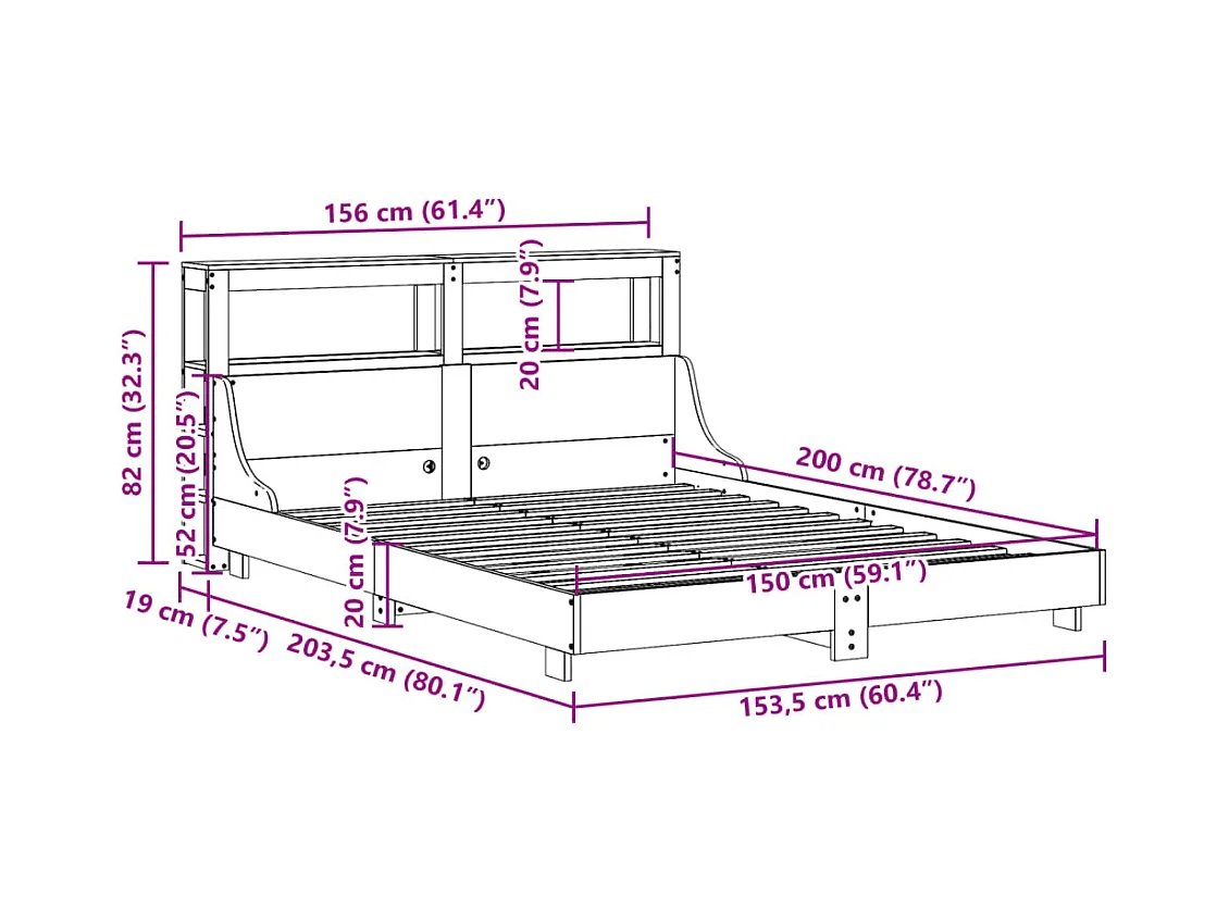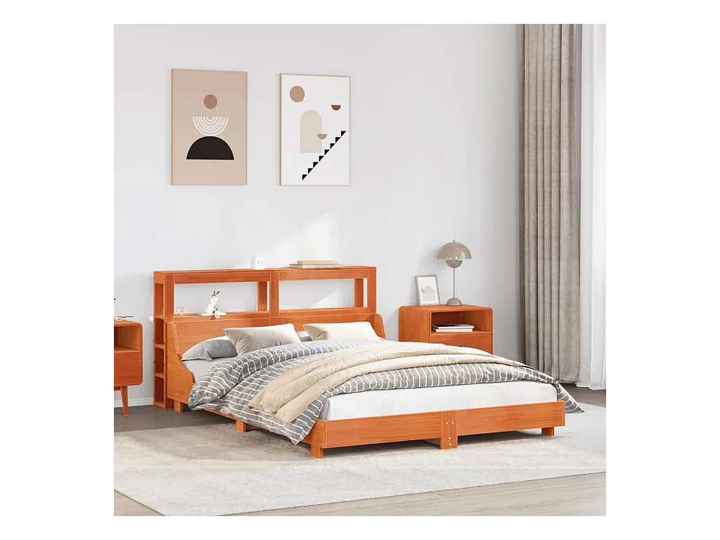 Cadre de lit sans matelas cire marron 150x200cm bois pin massif