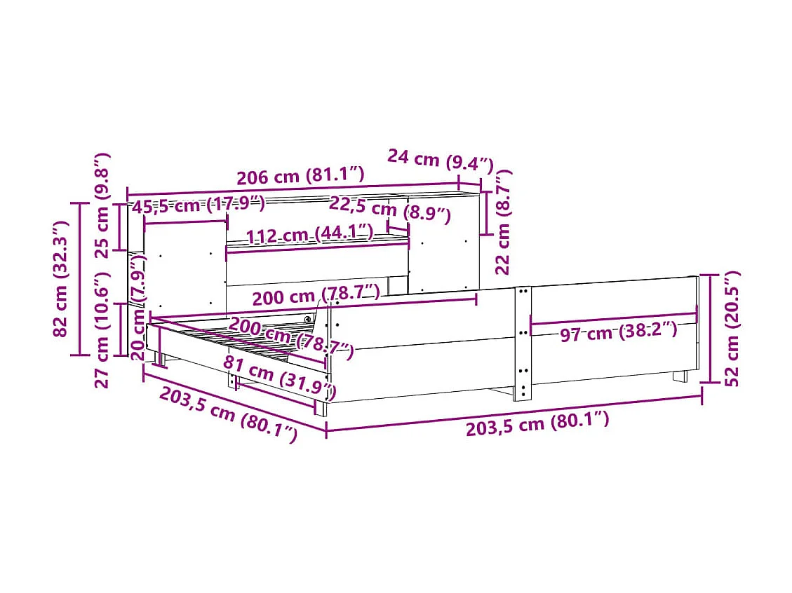 Lit bibliothèque sans matelas cire marron 200x200 cm pin massif