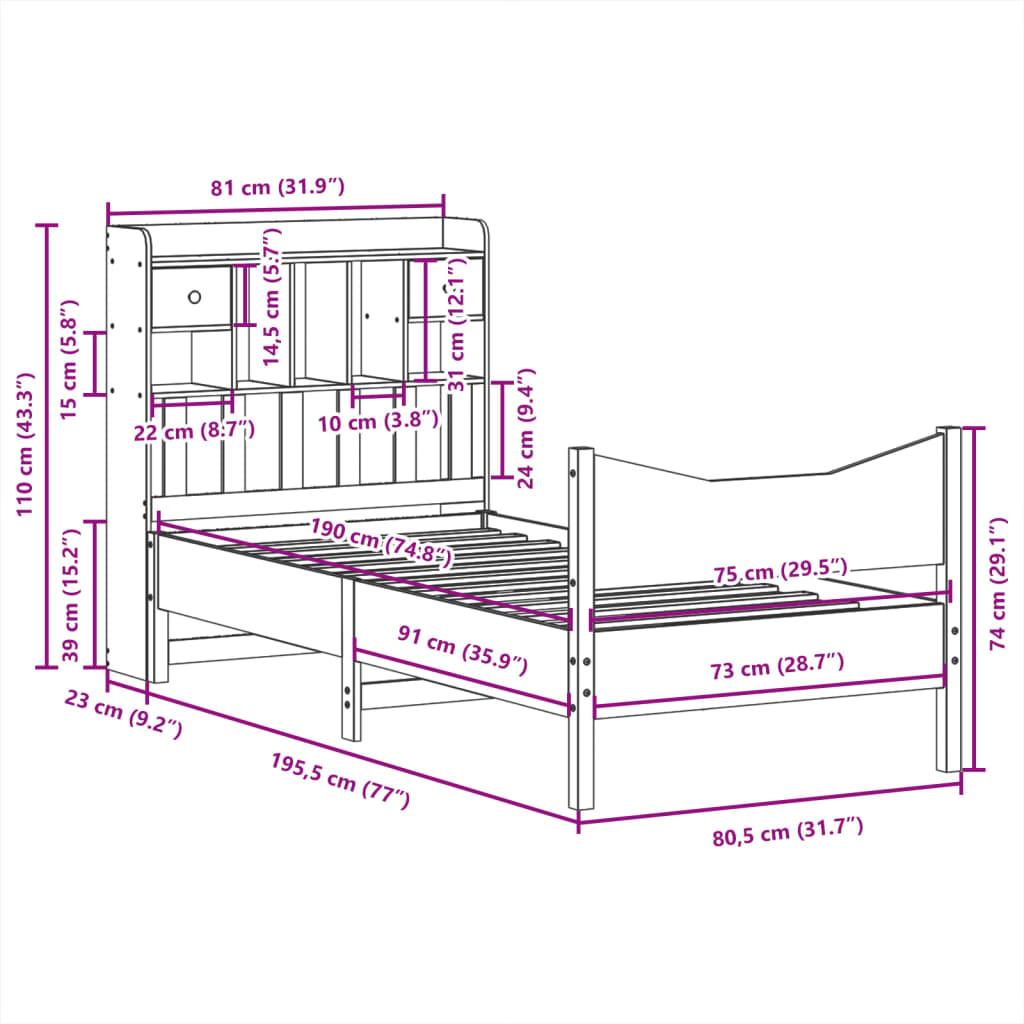 Cadre de lit sans matelas avec tête de lit 75x190 cm pin massif