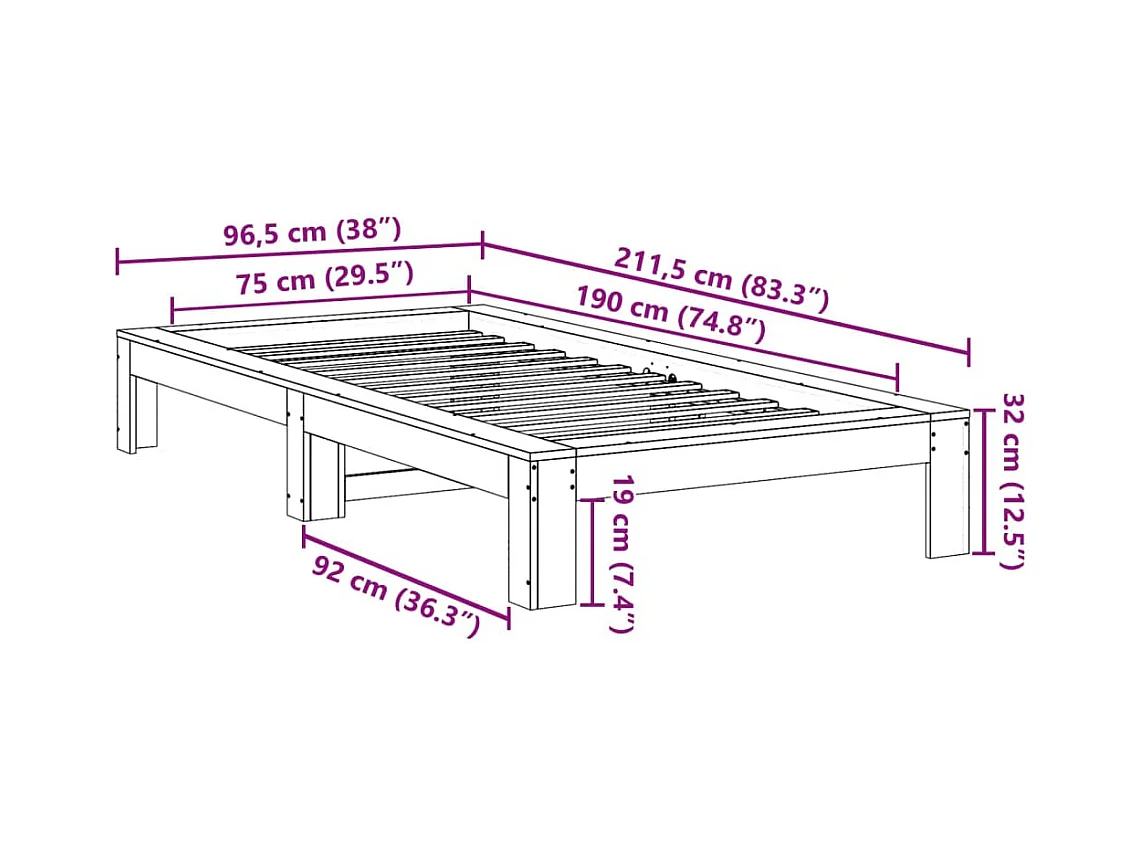 Cadre de lit Marron cire 75 x 190 cm Bois massif en pin