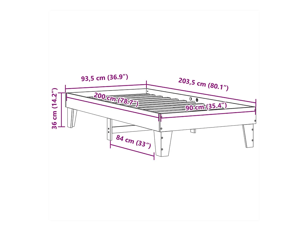 Cadre de lit sans matelas chêne fumé 90x200cm bois d'ingénierie