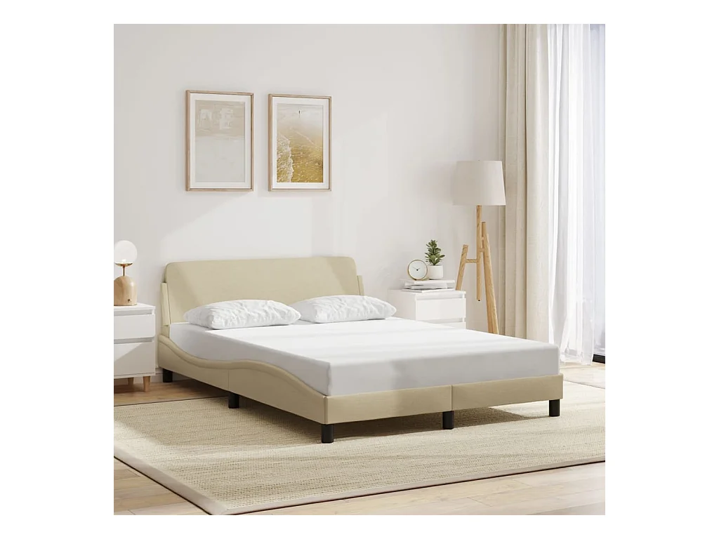 Cadre de lit sans matelas crème 140x200 cm tissu