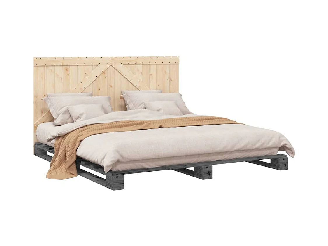 Lit-200x200 cm Gris Bois de pin massif EGGB47220