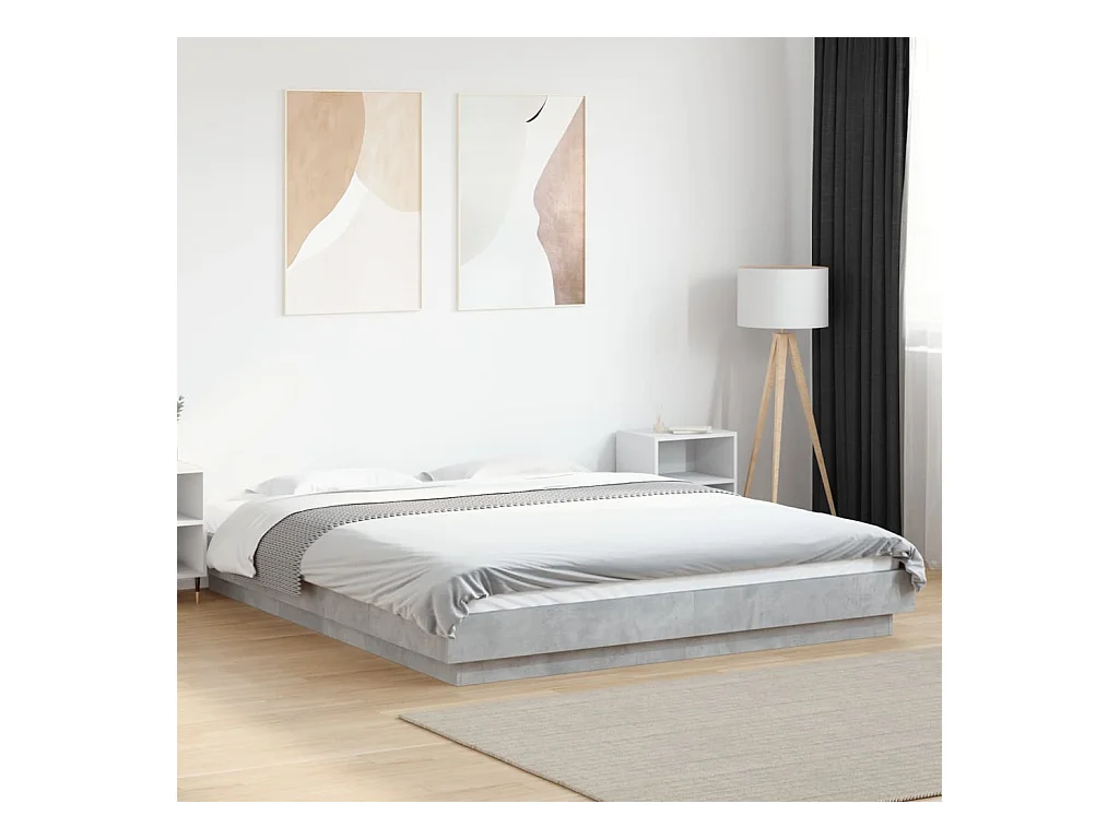 Cadre de lit avec tiroirs sans matelas gris béton 150x200 cm