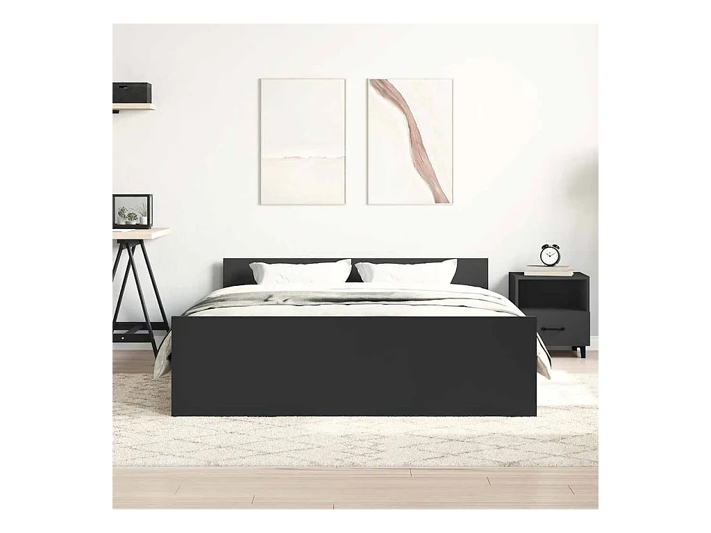 Cadre de lit sans matelas noir bois massif 140x190 cm