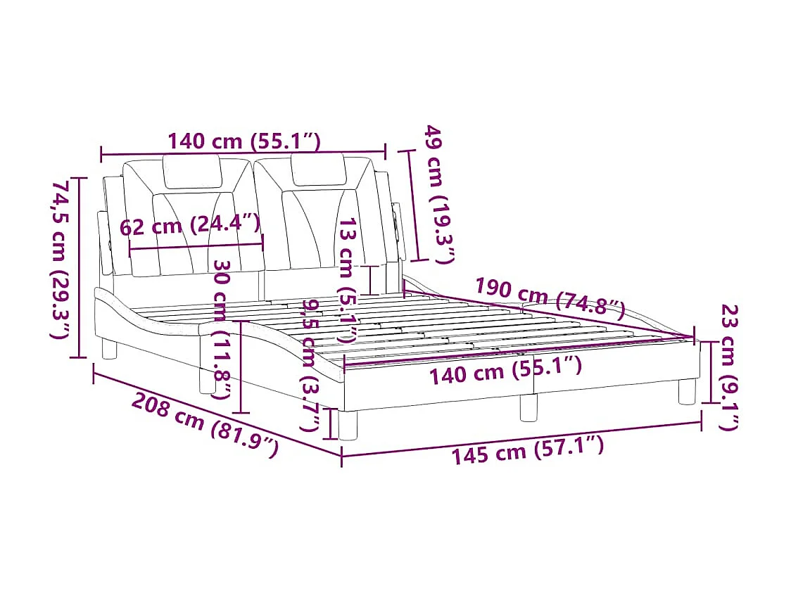Cadre de lit Viana sans matelas noir 140x190 cm similicuir