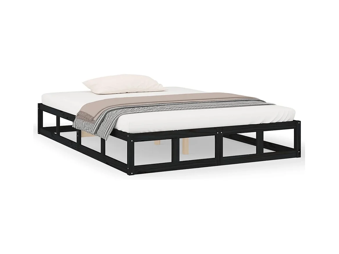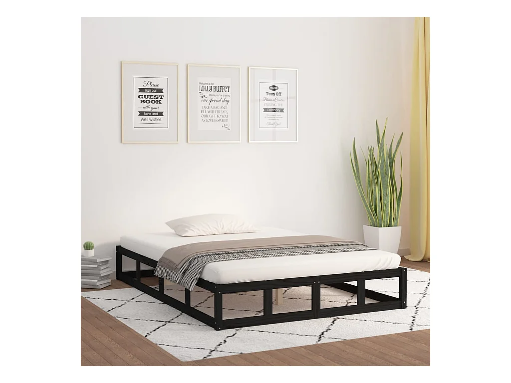 Cadre de lit sans matelas noir 200x200 cm bois massif de pin