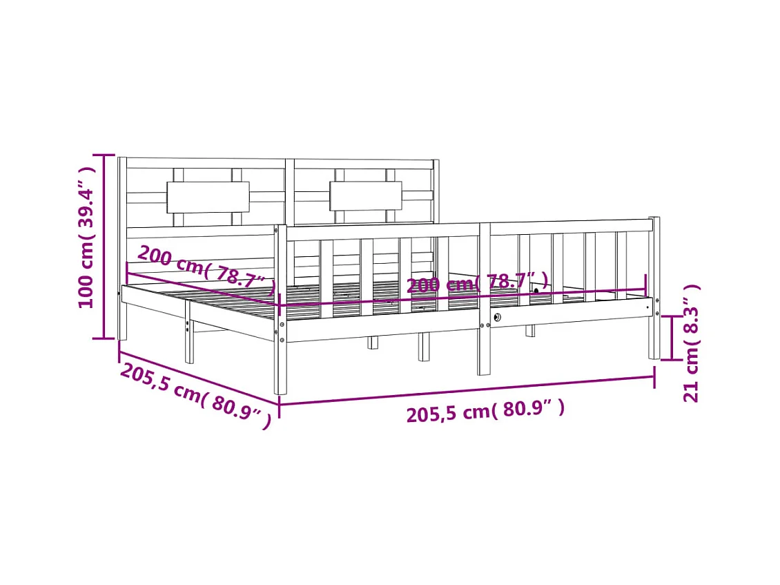 Lit-200x200 cm Noir Bois de pin massif EGGB16508