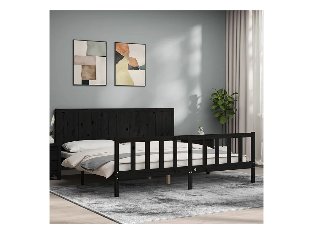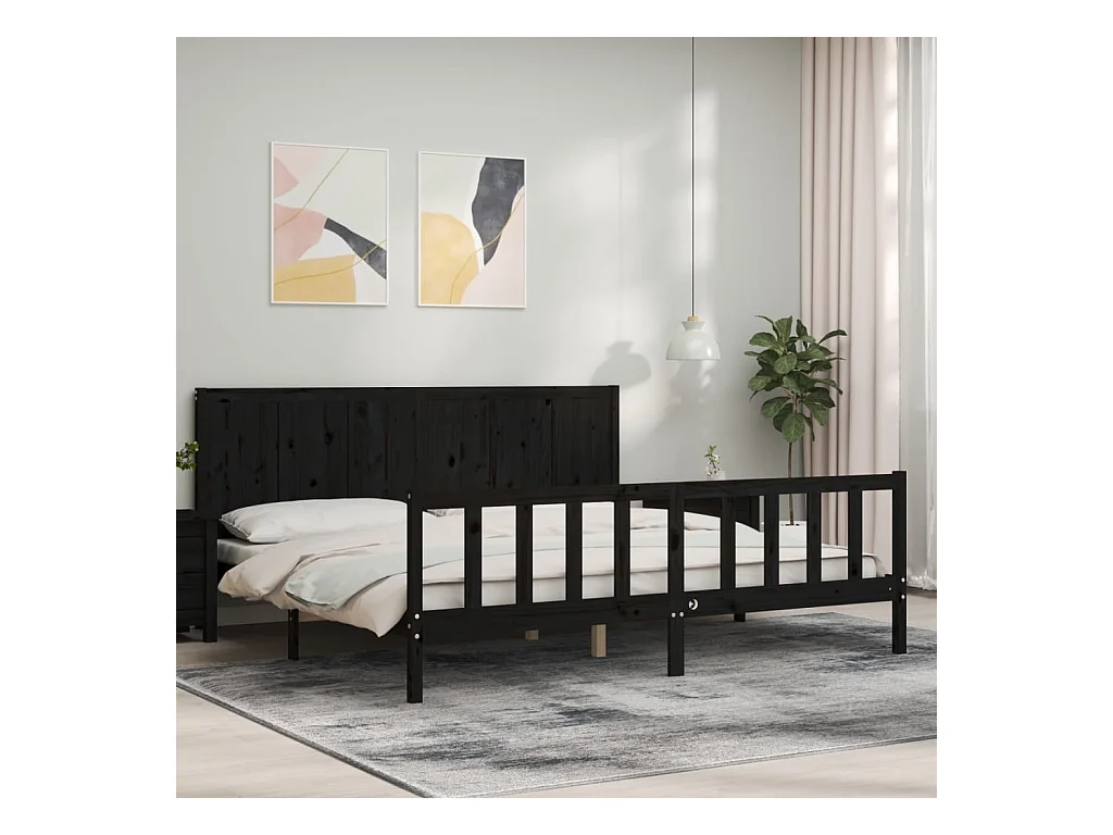 Lit-200x200 cm Noir Bois de pin massif EGGB41381