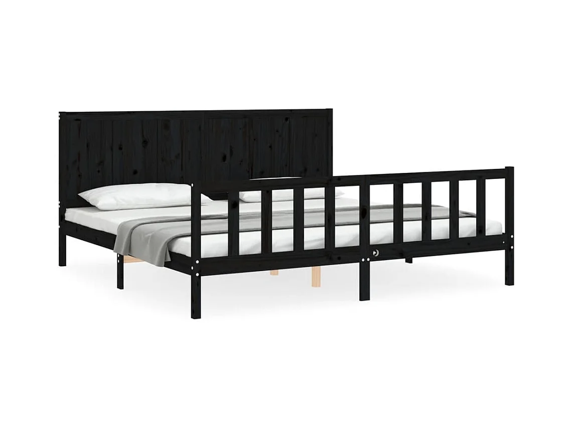Lit-200x200 cm Noir Bois de pin massif EGGB49394