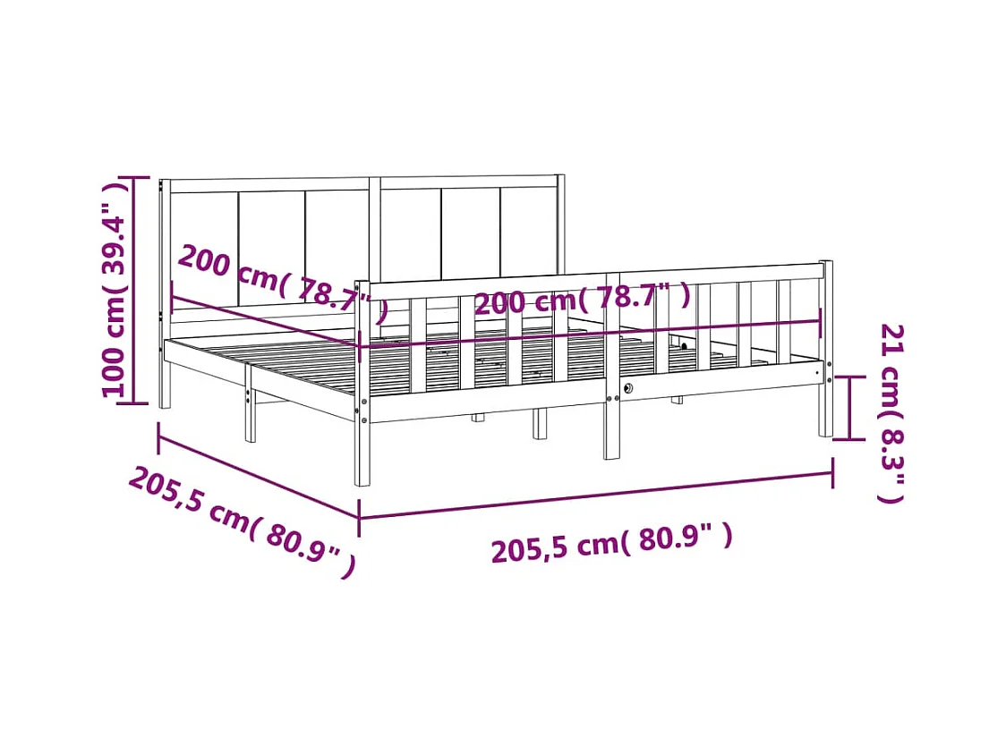 Lit-200x200 cm Noir Bois massif EGGB54362