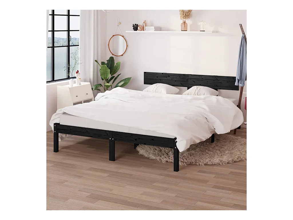 Cadre de lit sans matelas noir bois massif 140x200 cm
