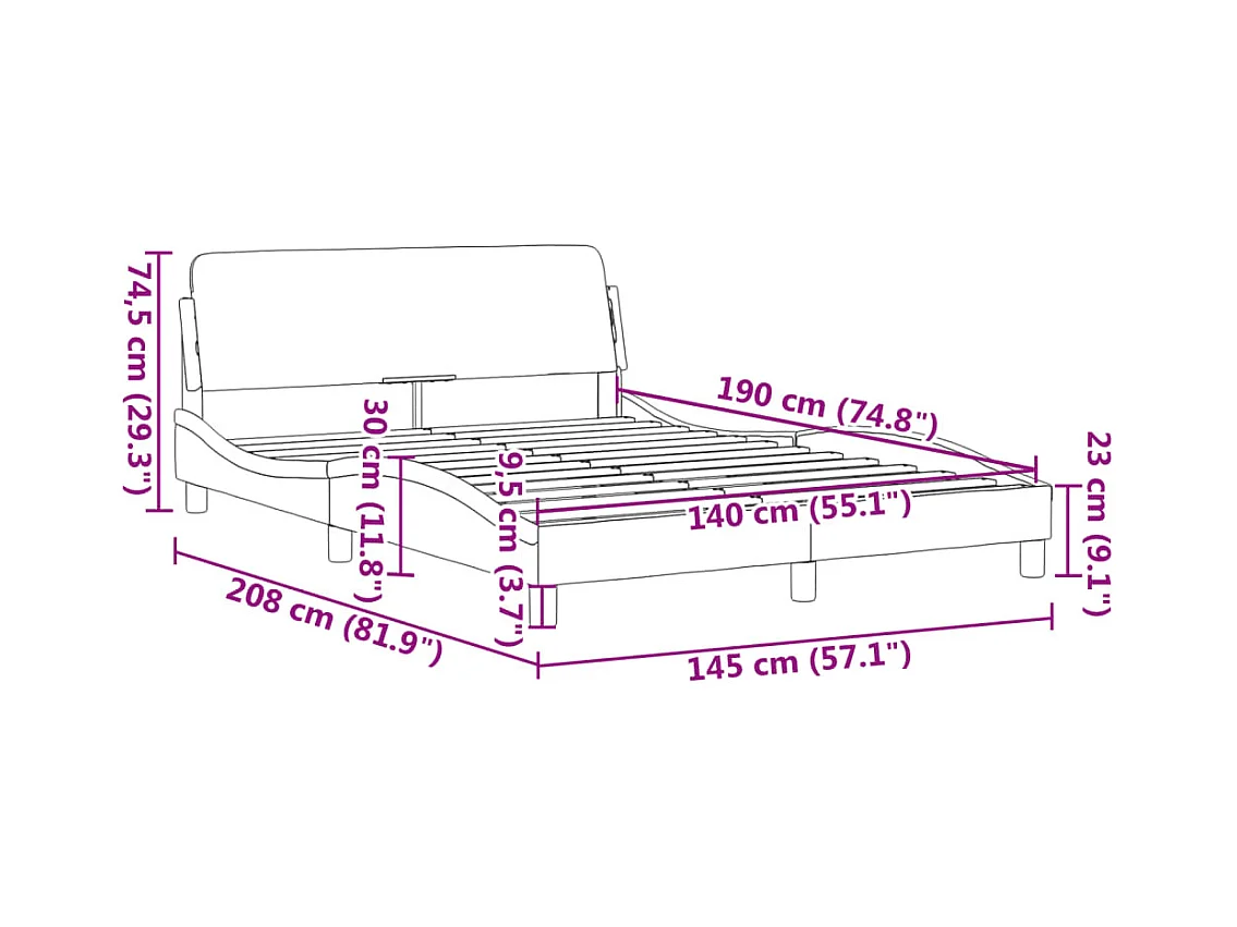 Cadre de lit sans matelas noir 140x190 cm velours