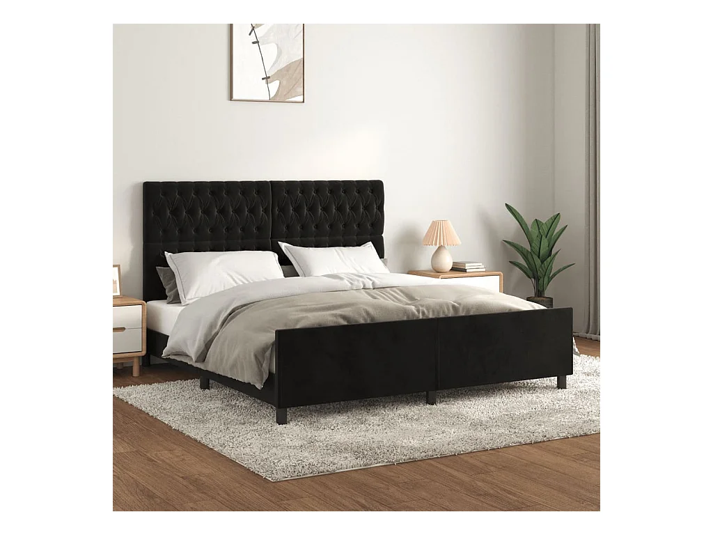 Cadre de lit sans matelas noir velours