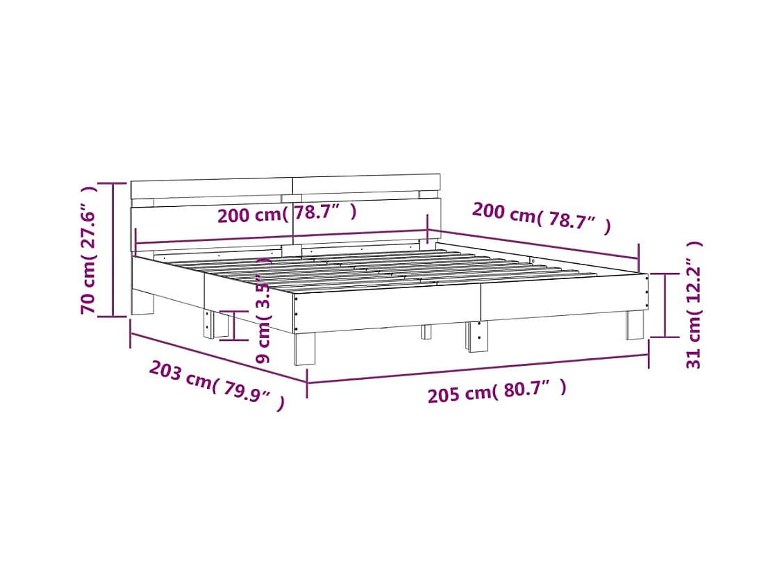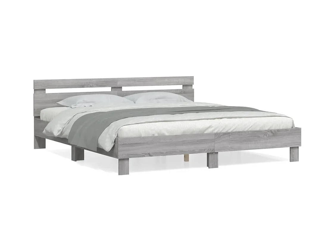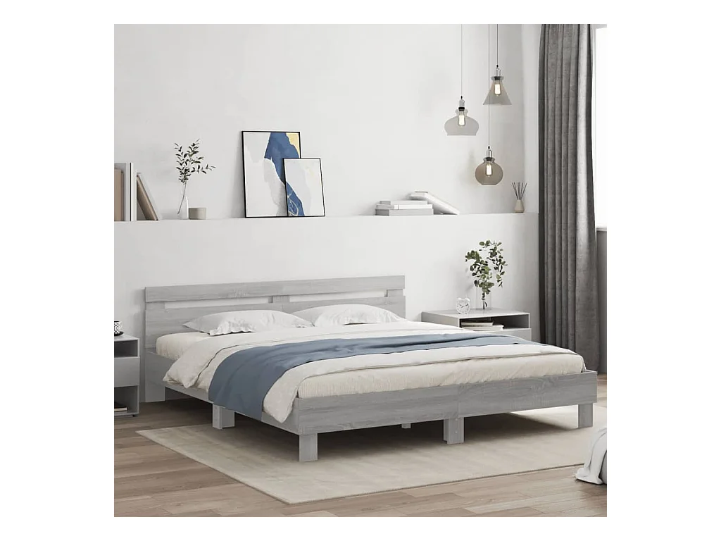 Cadre de lit tête de lit sans matelas sonoma gris 200x200 cm