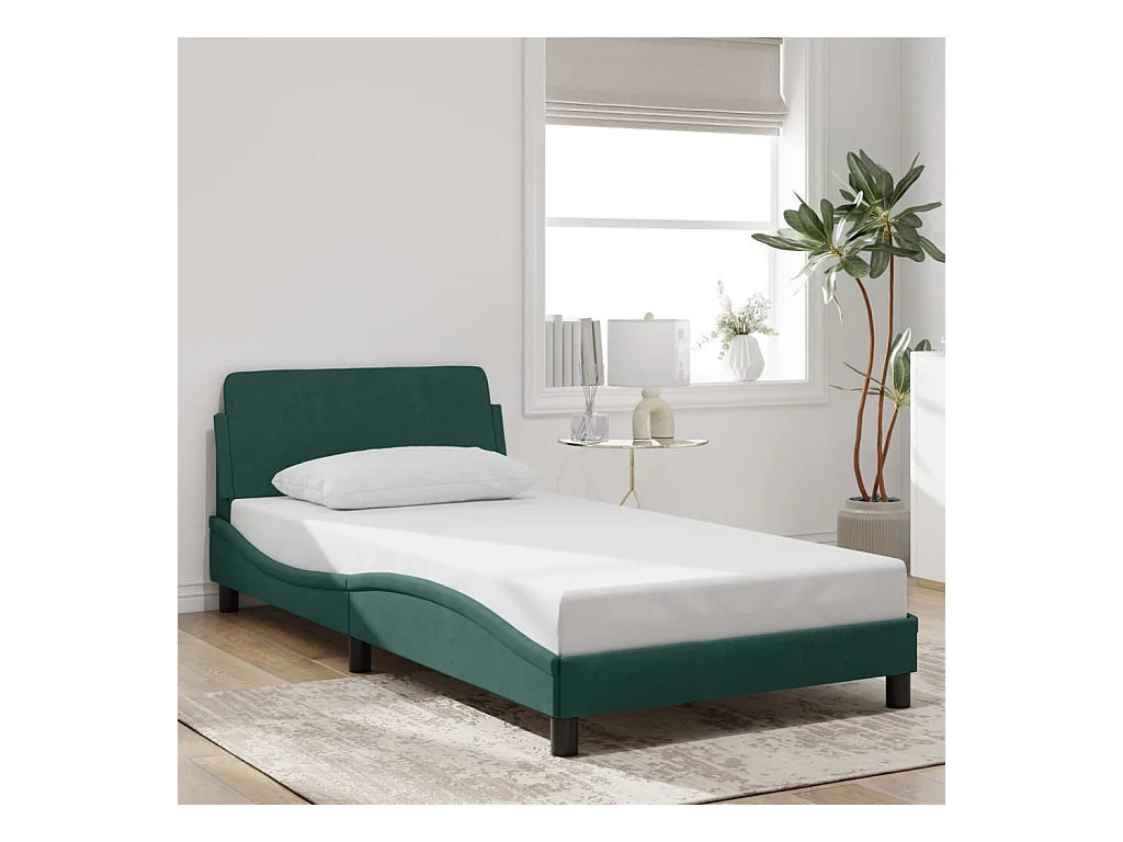 Cadre de lit sans matelas vert foncé 100x200 cm velours