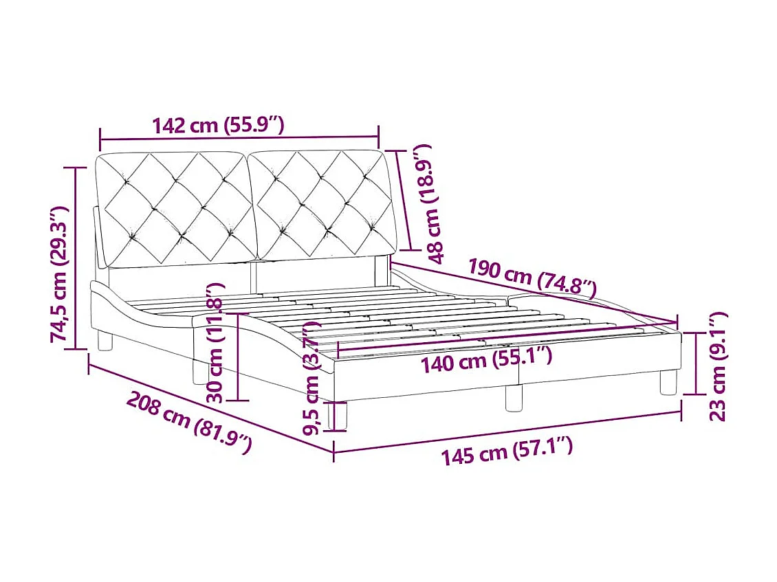Cadre de lit sans matelas vert foncé 140x190 cm velours