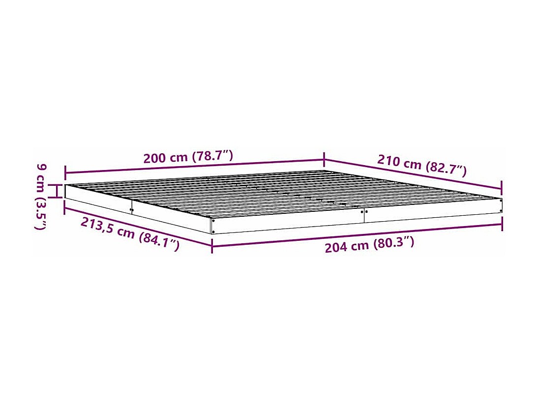 Cadre de lit extra long sans matelas 200x220 cm bois massif