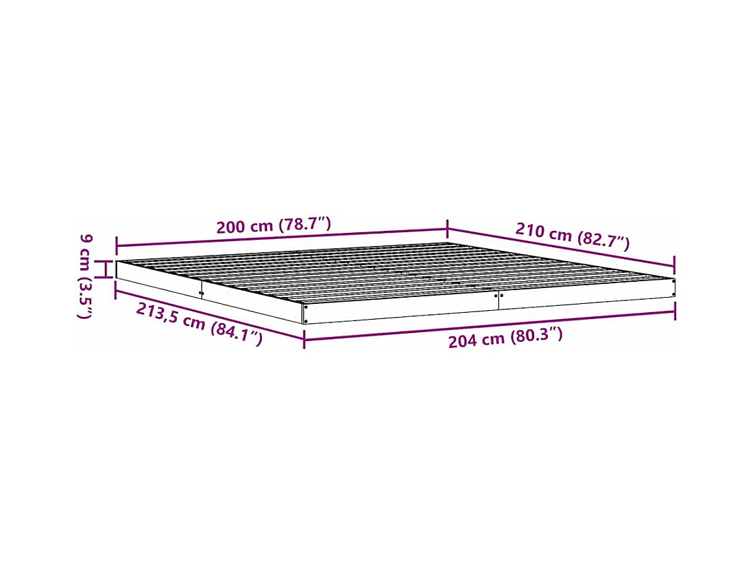 Cadre de lit familial sans matelas 270x200cm bois massif de pin