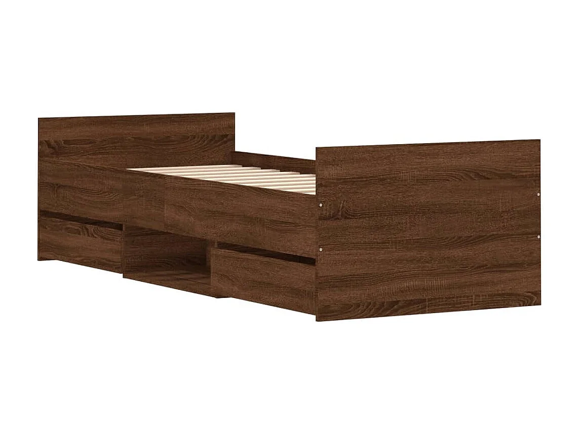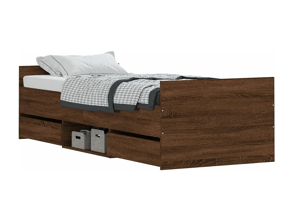 Cadre de lit tête de lit et pied de lit chêne marron 75x190
