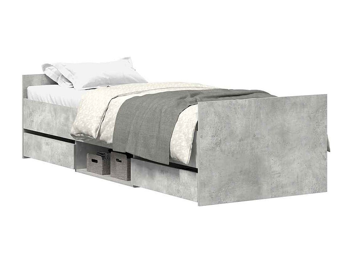 Cadre de lit sans matelas gris béton 75x190 cm