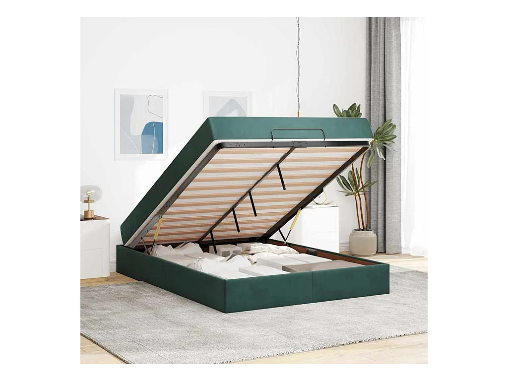 Cadre de lit ottoman avec matelas vert foncé 160x200 cm velours