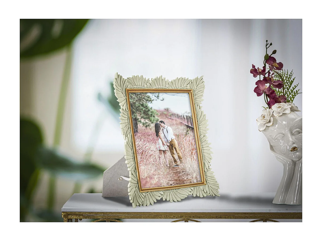Cadre Photo Déco Feuilles "Pinty" 20x25cm Crème