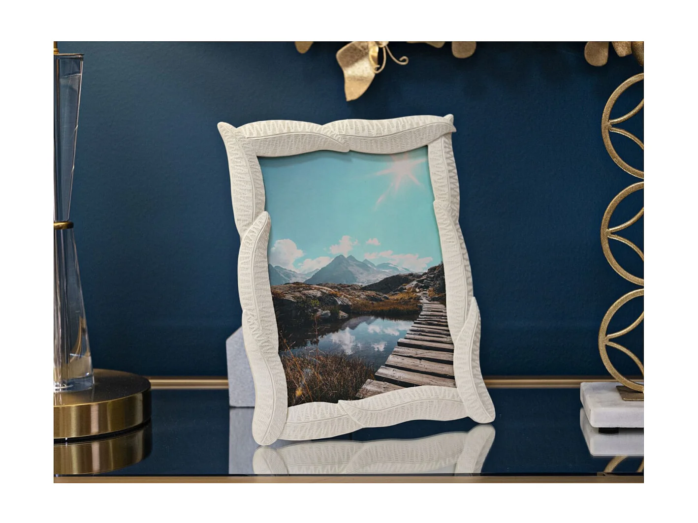 Cadre Photo Déco Feuilles "Snake" 15x20cm Crème