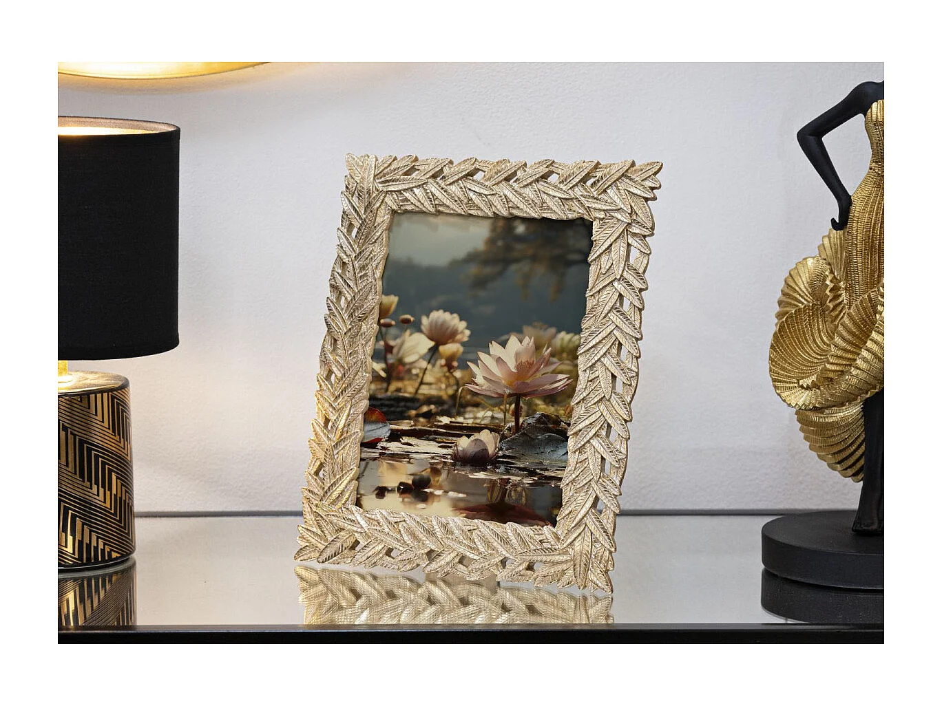 Cadre Photo Déco Pétale de Fleur "Mola" 15x20cm Or
