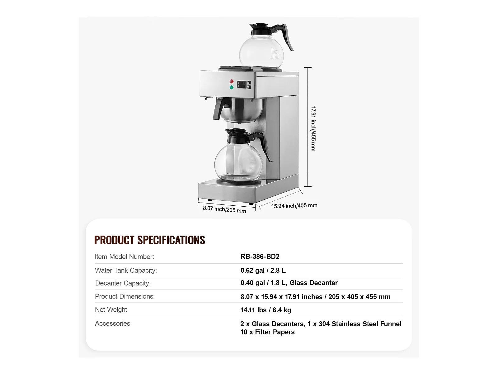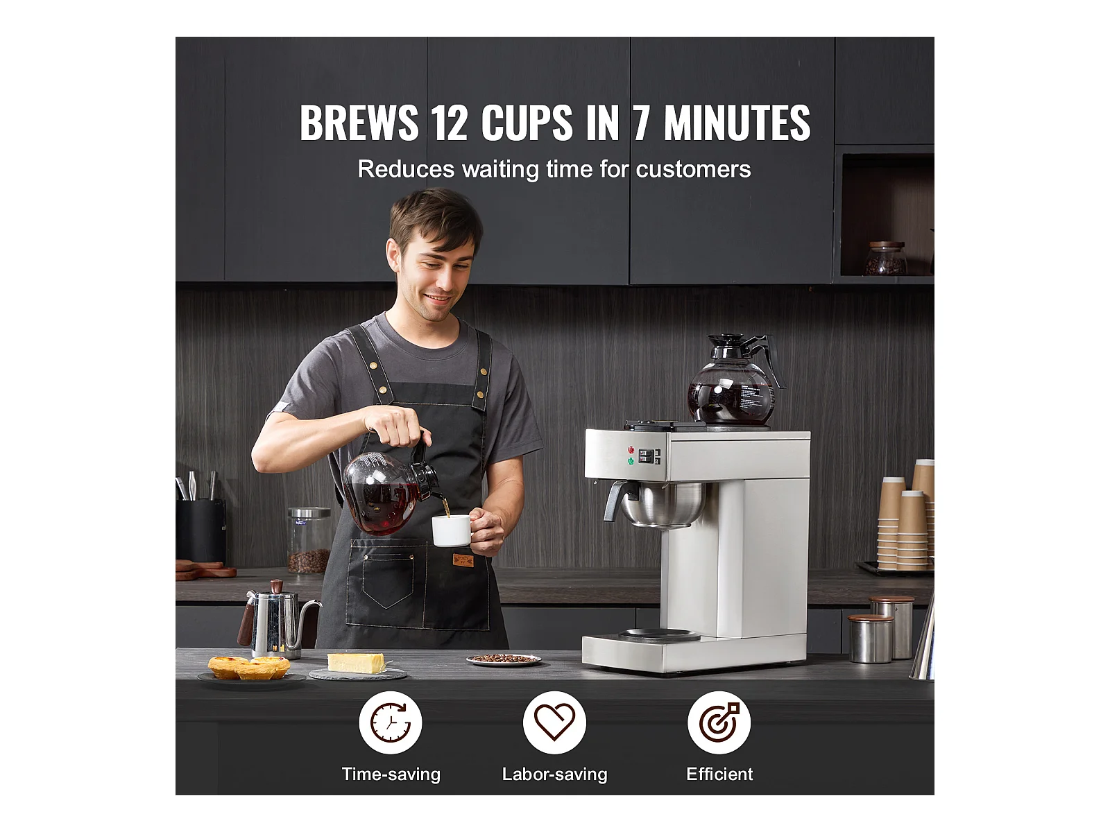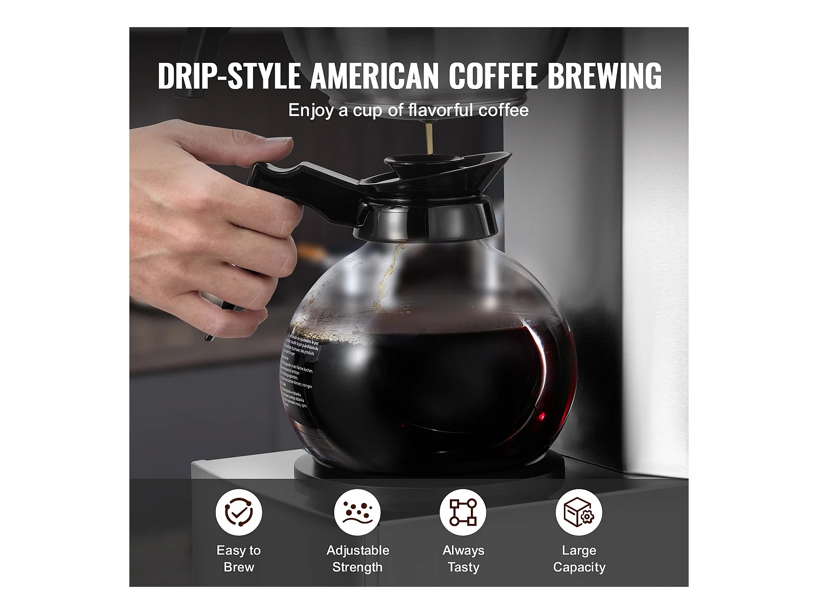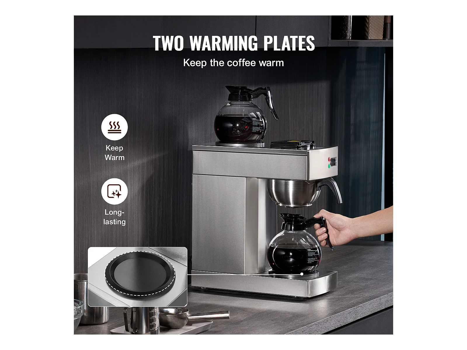 Cafetière à Filtre Commerciale SucceBuy 12 Tasses, 2 Carafes en Verre et 2 Réchauds