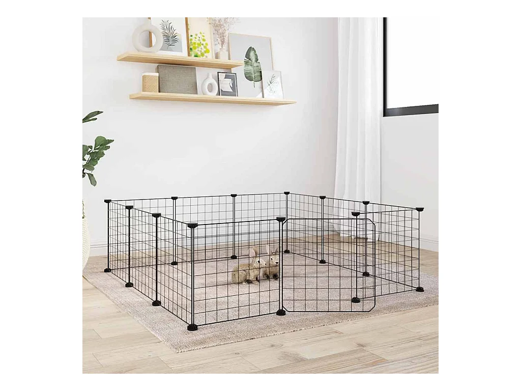 Cage animaux de compagnie à 8 panneaux Noir 35x35 cm Acier