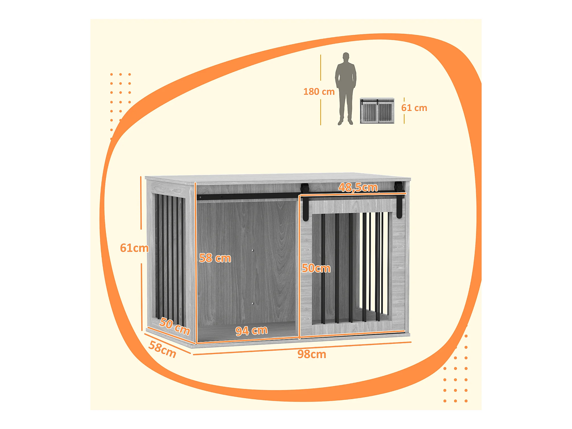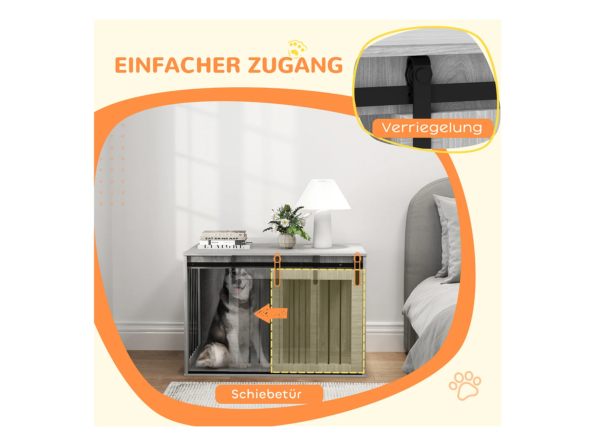 Cage pour chien verrouillable avec porte coulissante, panneau de particules, gris (98x58x61 cm)