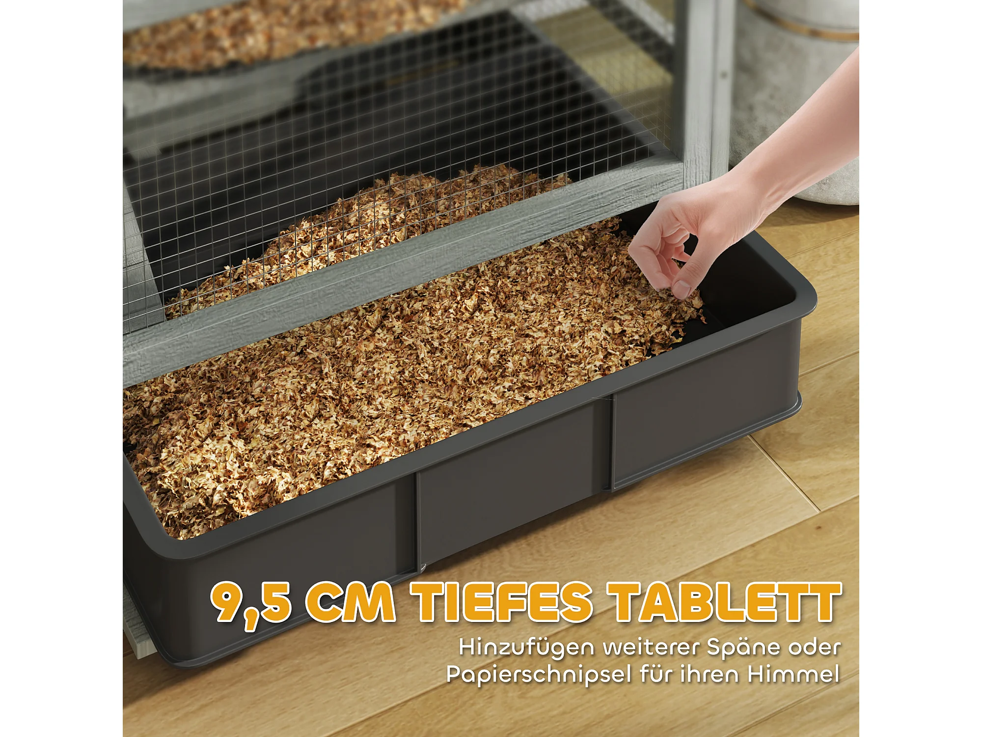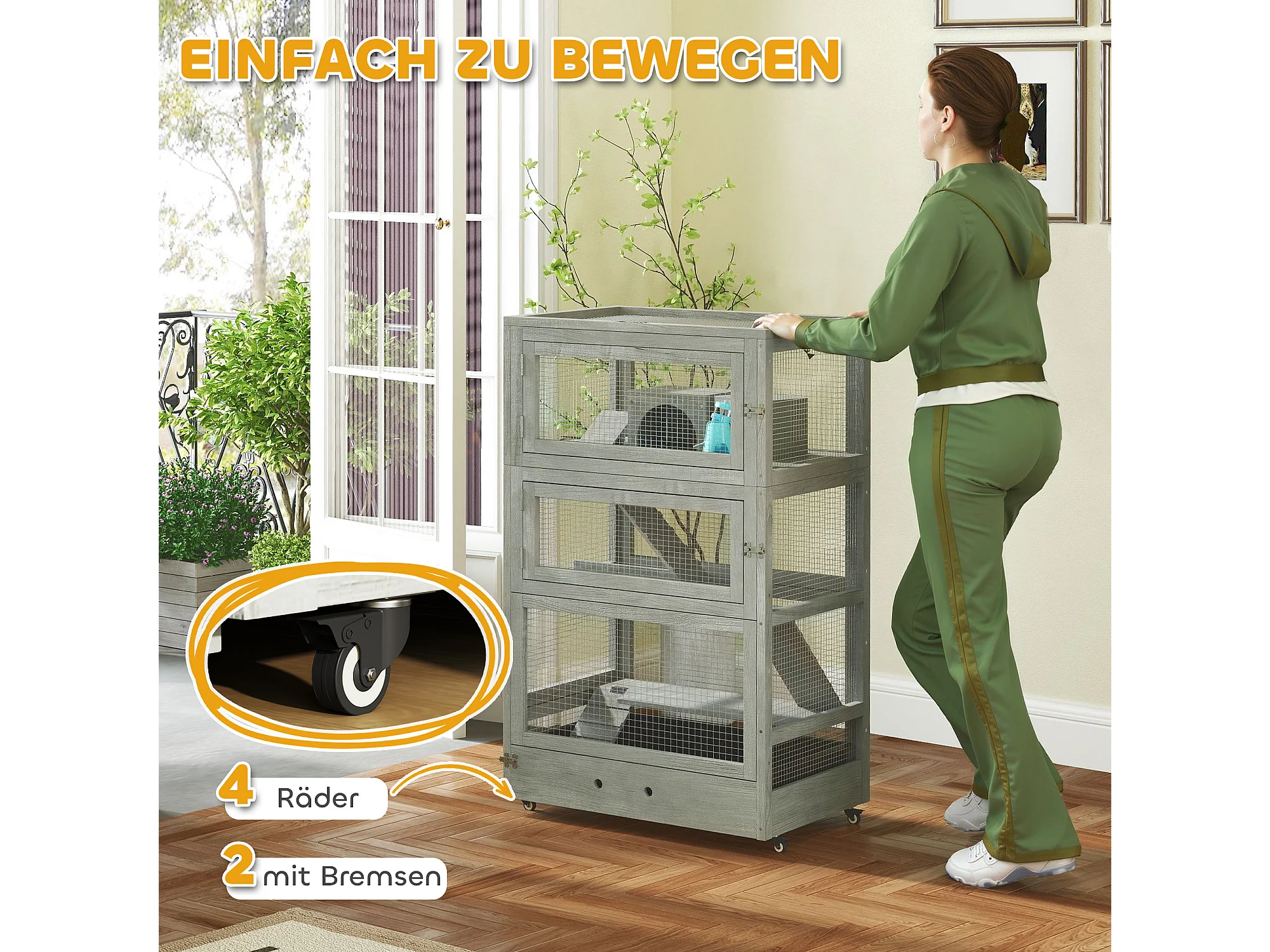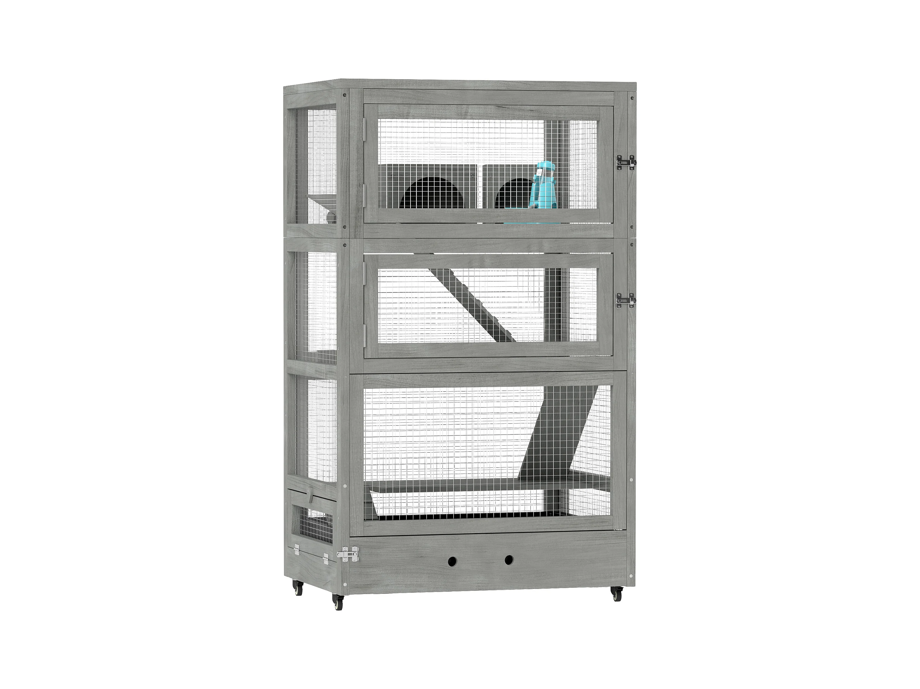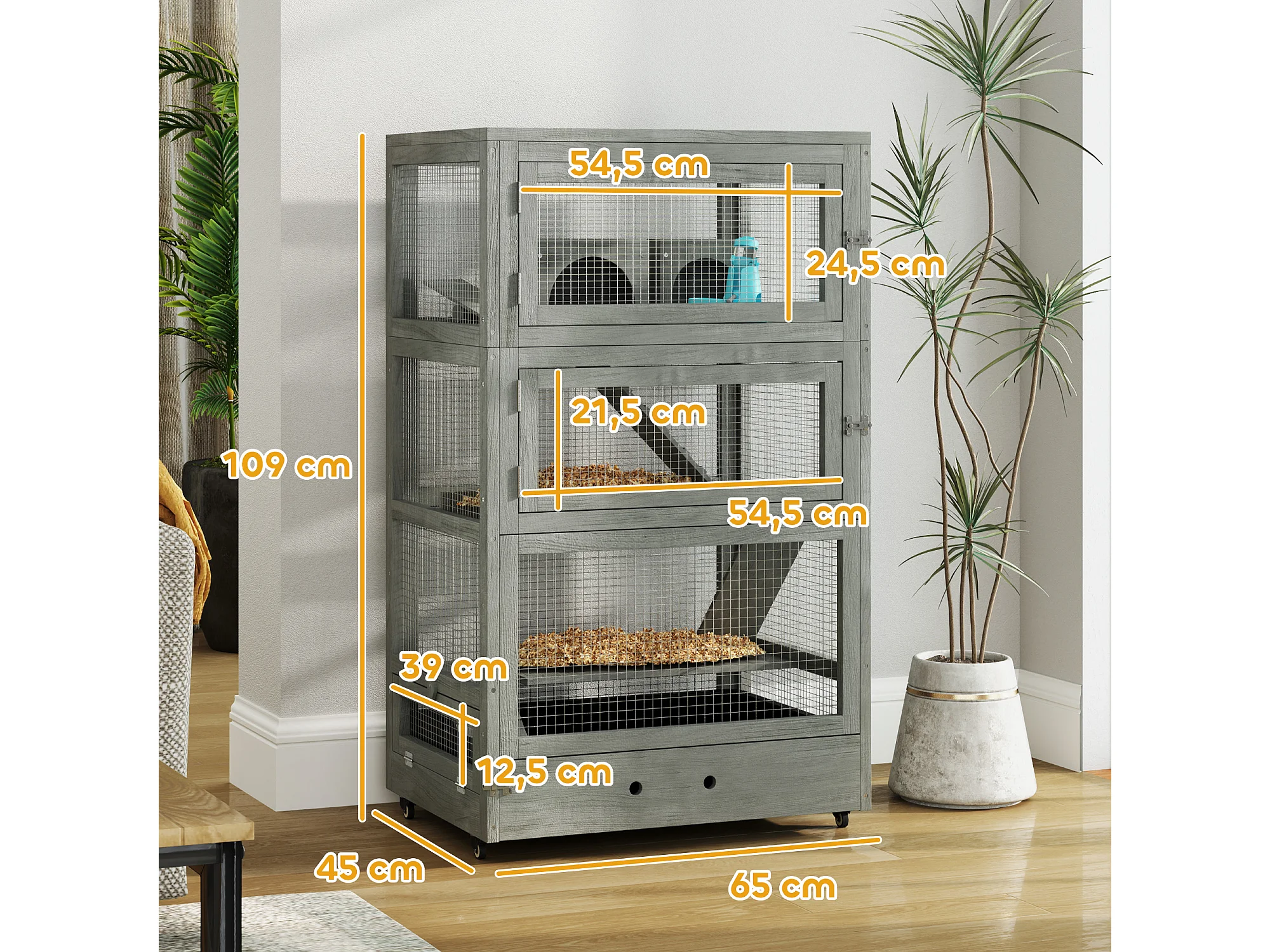 Cage pour hamster nain en bois, à 4 niveaux avec accessoires, gris (65x45x109 cm)