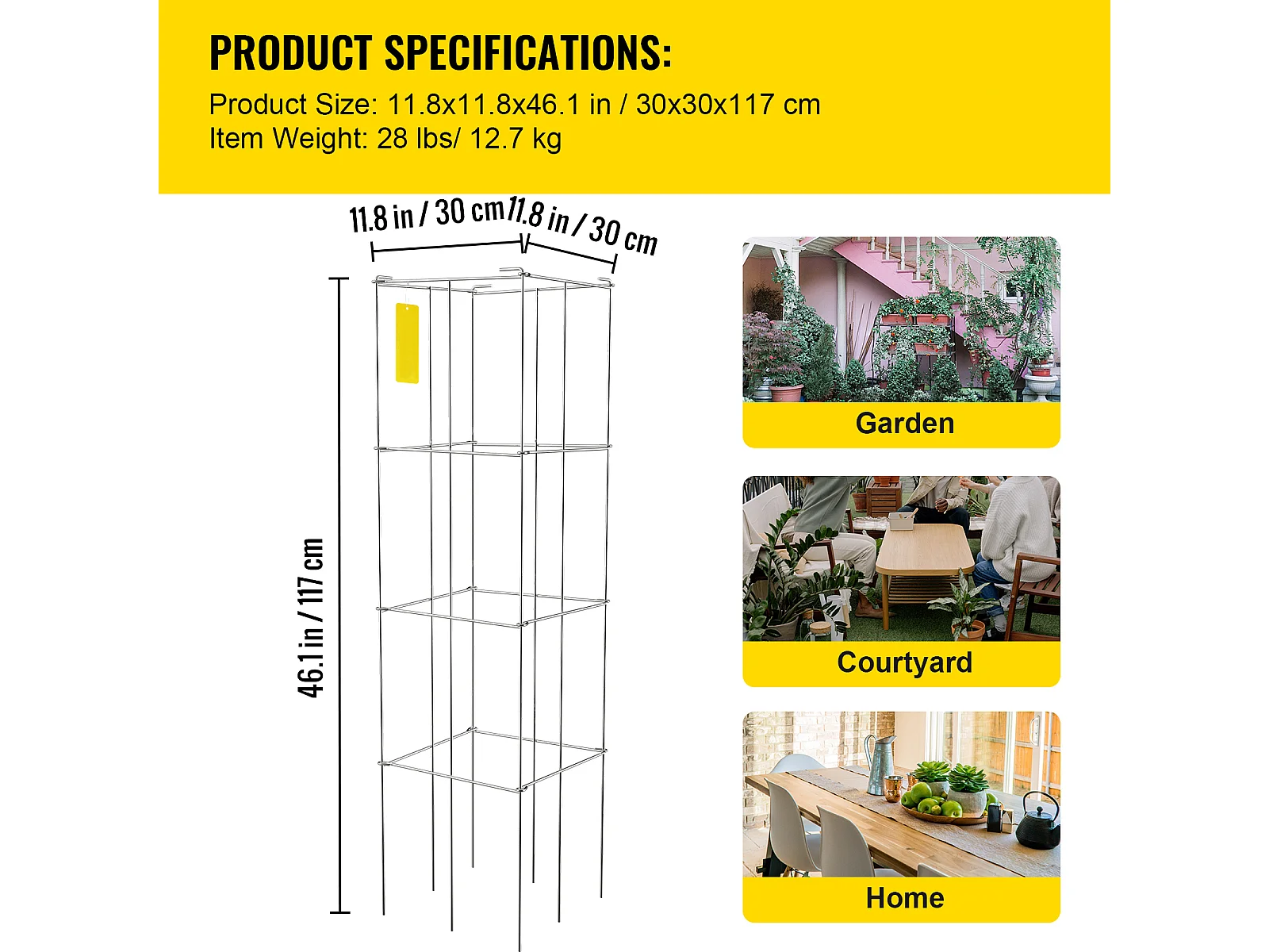 Cages à Tomates SucceBuy Lot de 10 Cages à Tomates, Support Carré en Acier de 116cm pour Plantes de Jardin