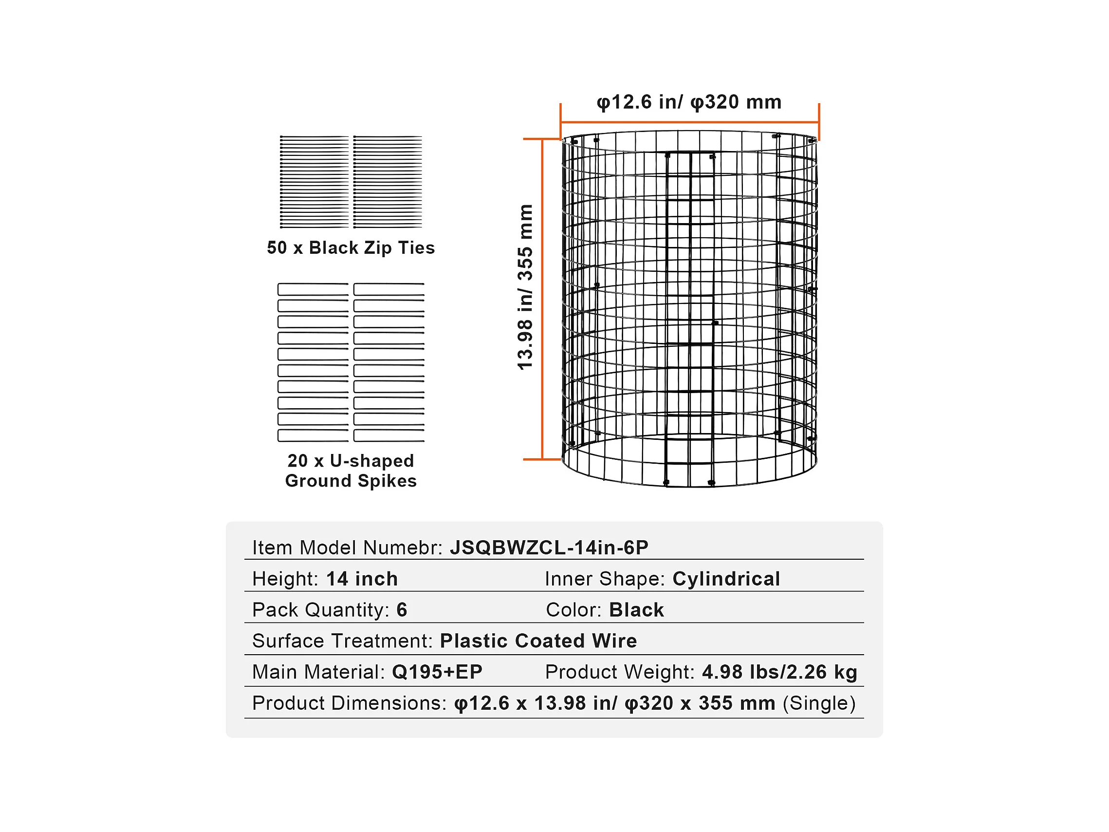 Cages et Supports pour Plantes SucceBuy, 6 Pièces, 32 cm de Diamètre x 35,6 cm de Hauteur, Garde les Animaux à l'Extérieur