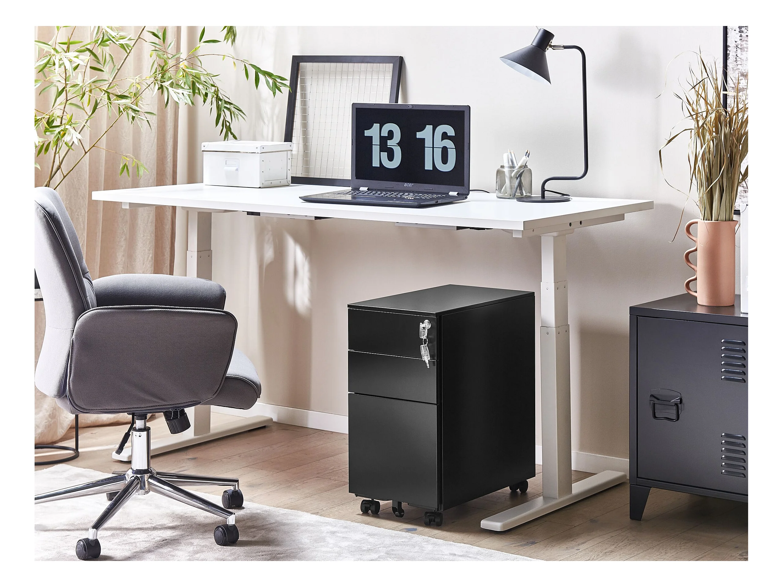 Porte-Bureau avec 3 Schubladen et Rädern, en Acier, Noir pour Bureau et Bureau à Domicile