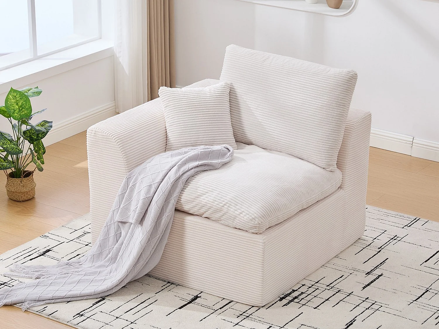 Câlin - Canapé 1 Places Modulable - Canapés d'Appoint en Velours Côtelé - 2 Coussins Ergonomiques Inclus - Ensemble Salon Modulable pour Salle de Séjour