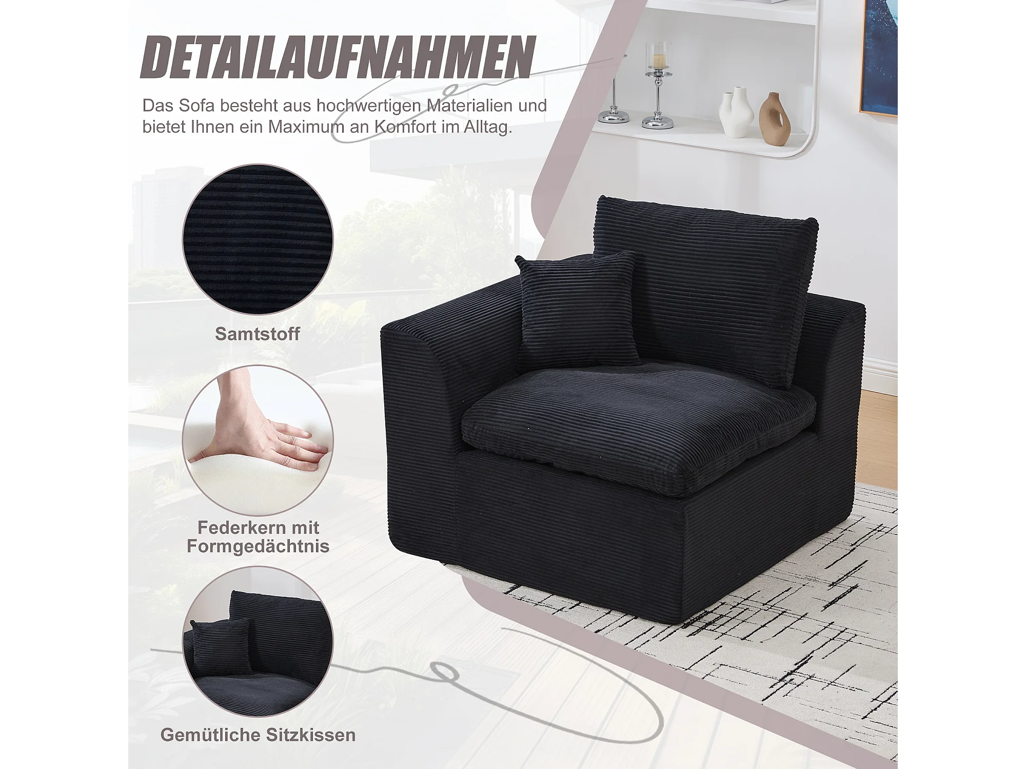 Câlin - Canapé 1 Places Modulable - Canapés d'Appoint en Velours Côtelé - 2 Coussins Ergonomiques Inclus - Ensemble Salon Modulable pour Salle de Séjour