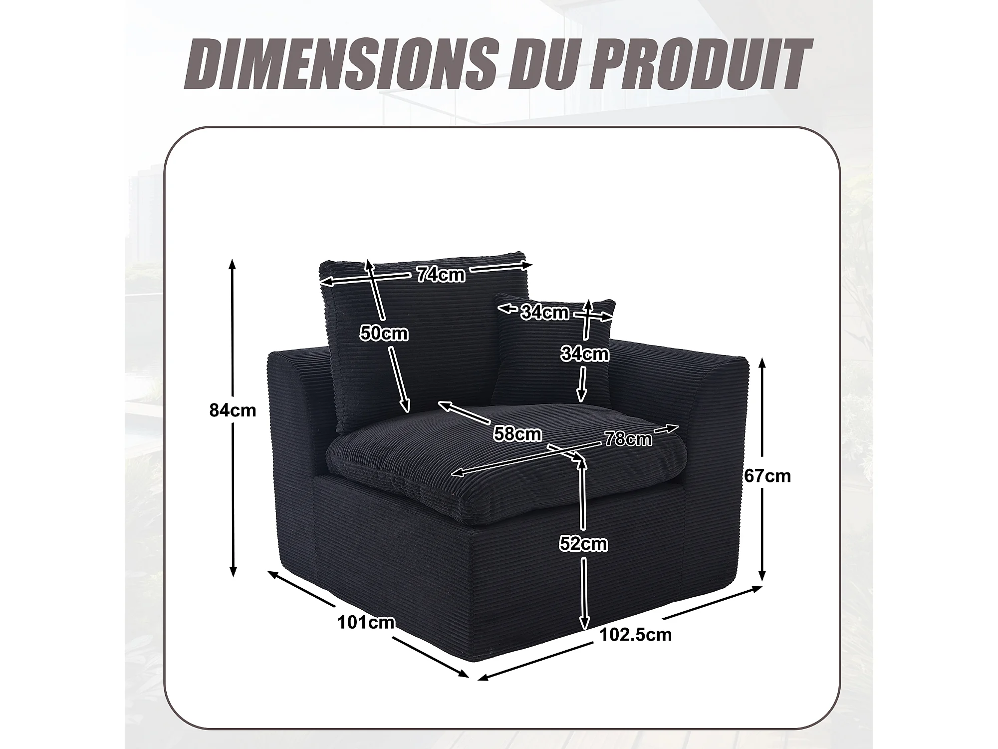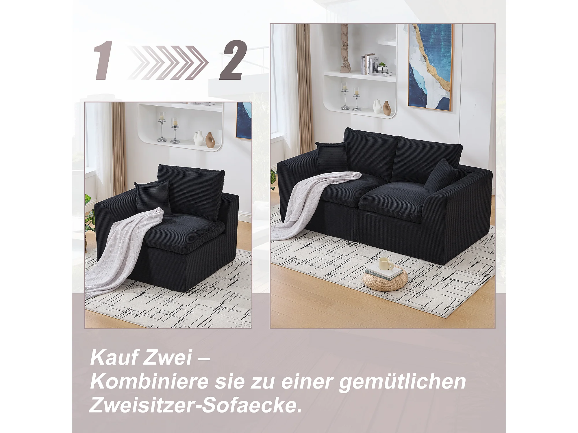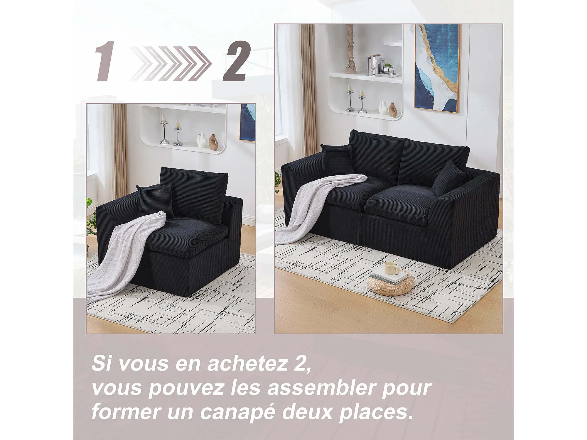 Câlin - Set Canapé 2 Places Modulable - 2 Canapés d'Appoint en Velours Côtelé - 4 Coussins Ergonomiques Inclus - Ensemble Salon Modulable pour Salle de Séjour