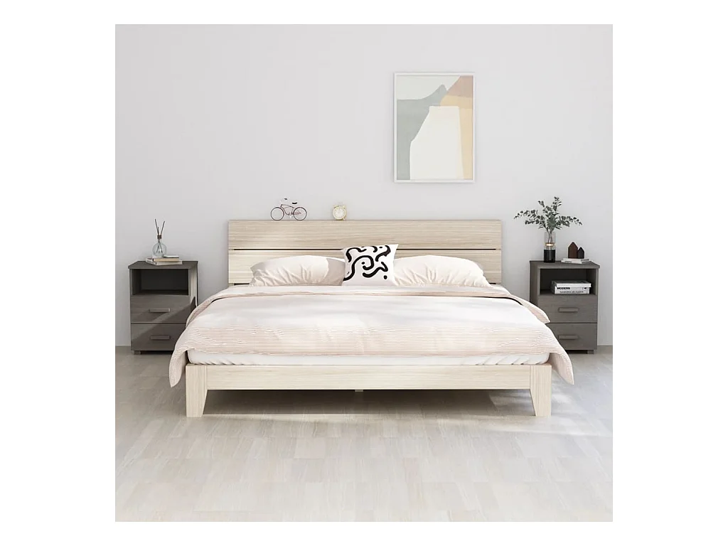 Calvino Tables de chevet HAMAR 2 pcs Gris clair 40x35x62 cm Bois massif
