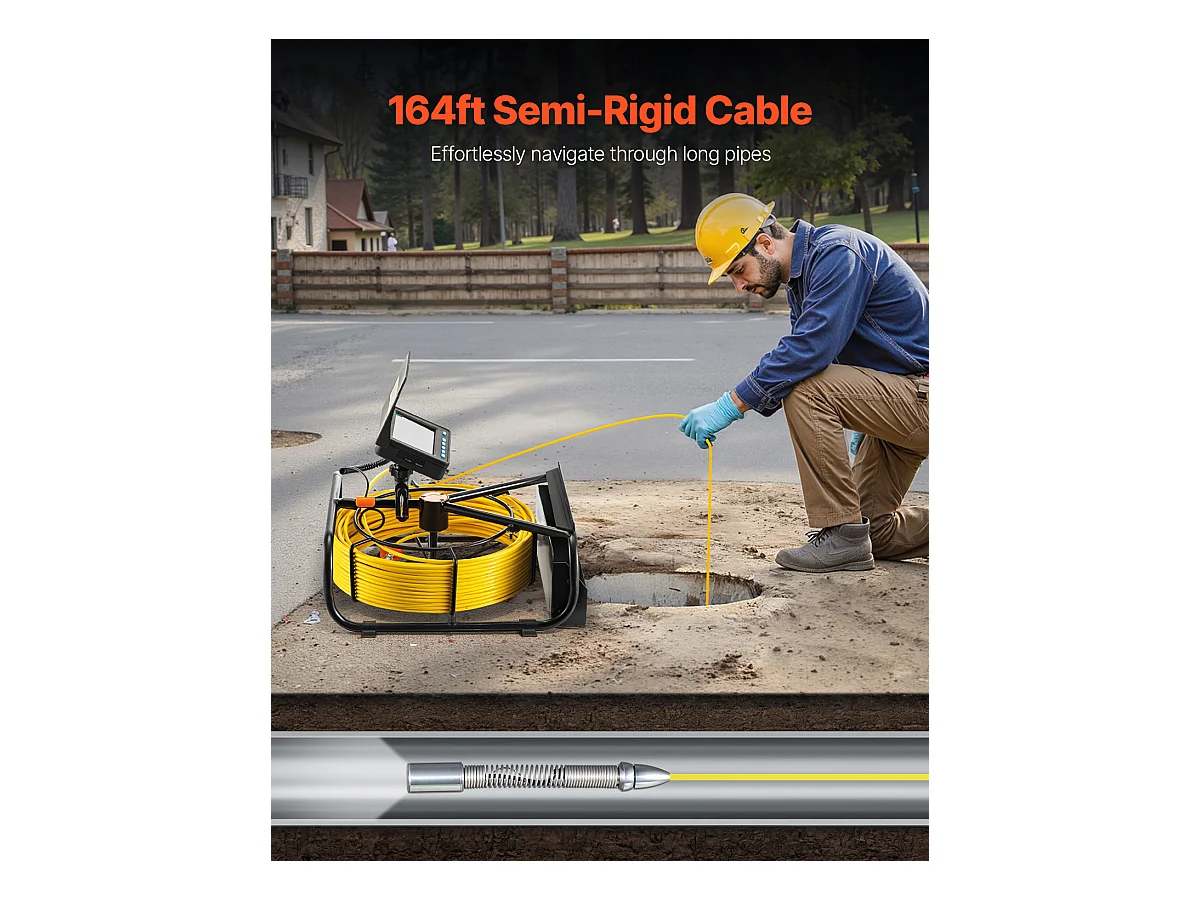 Caméra SucceBuy Caméra D'égout, 165 pi/50 m de long, Caméra de Drainage à Nivellement Automatique avec Écran de 9 po et Zoom 36X.