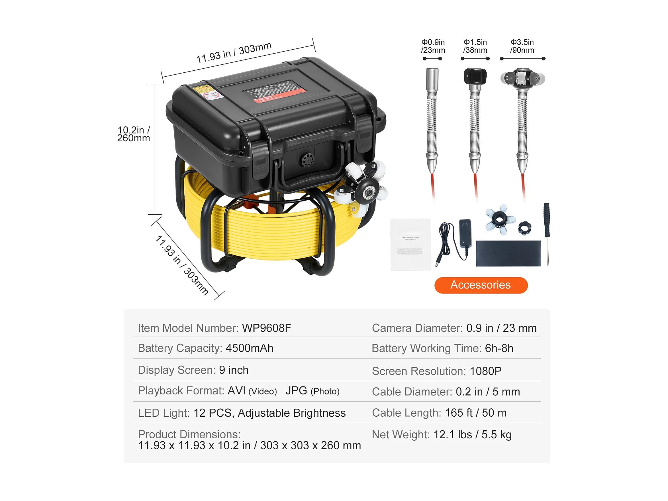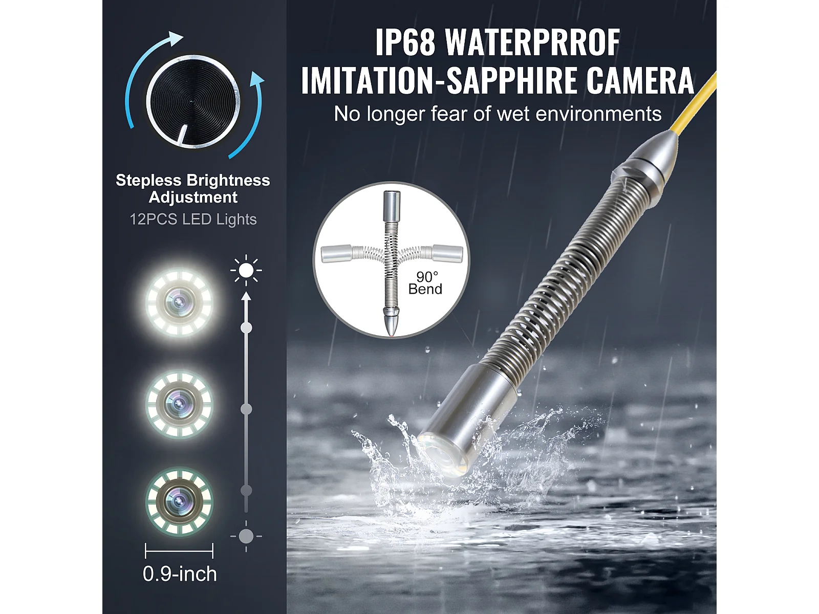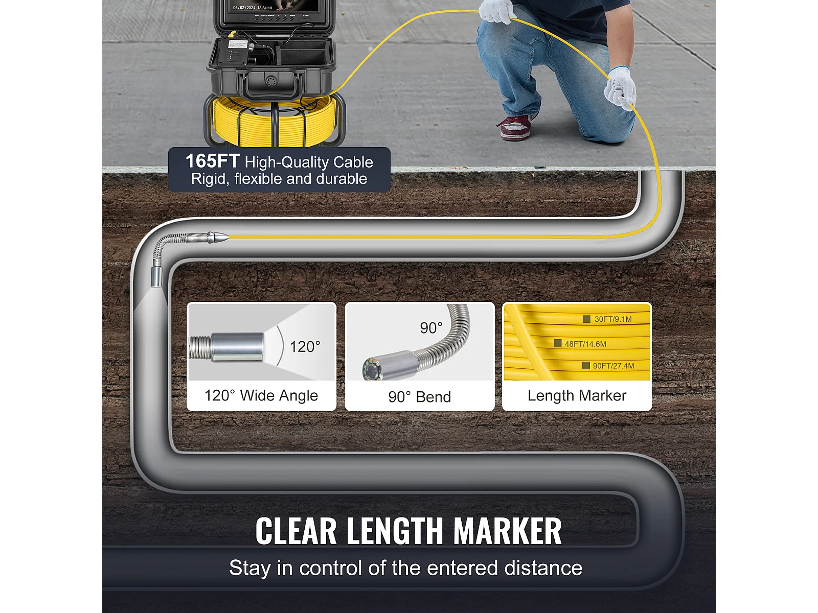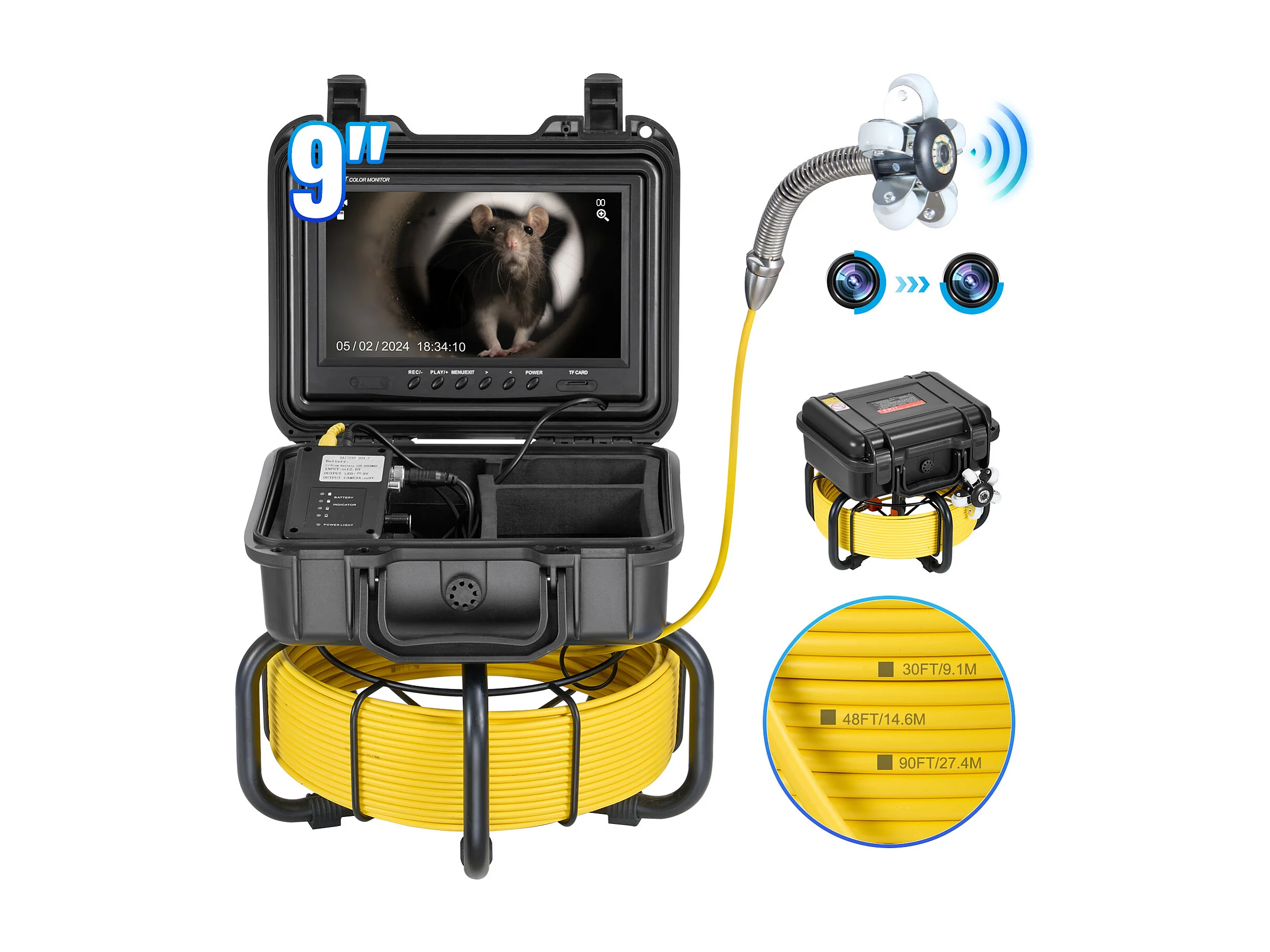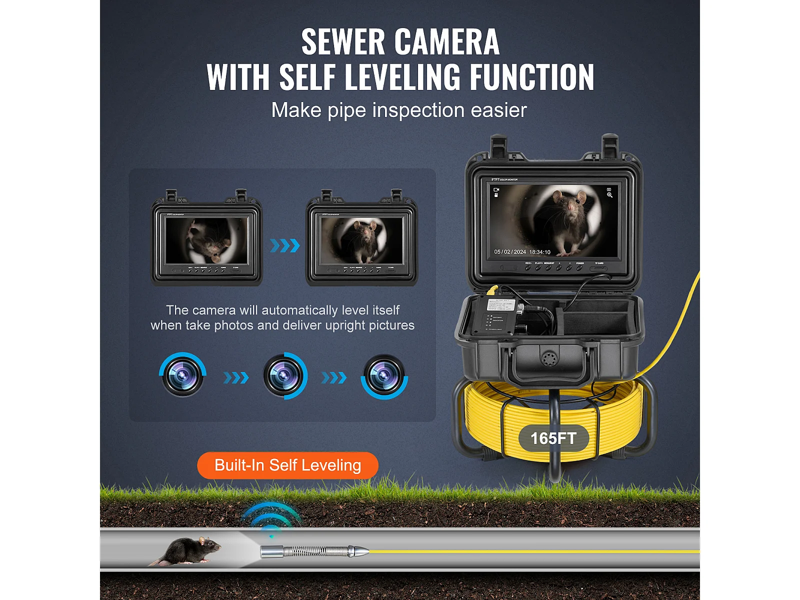 Caméra SucceBuy Caméra D'égout, 165 pi/50 m de long, Caméra de Drainage à Nivellement Automatique avec Écran de 9 po et Zoom 36X.