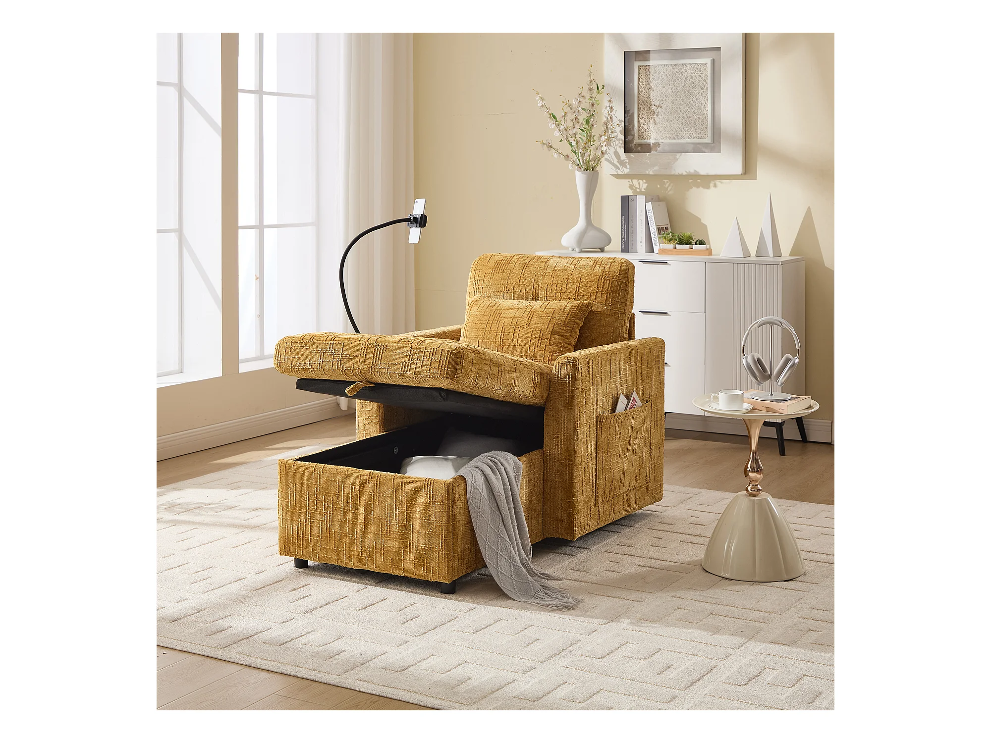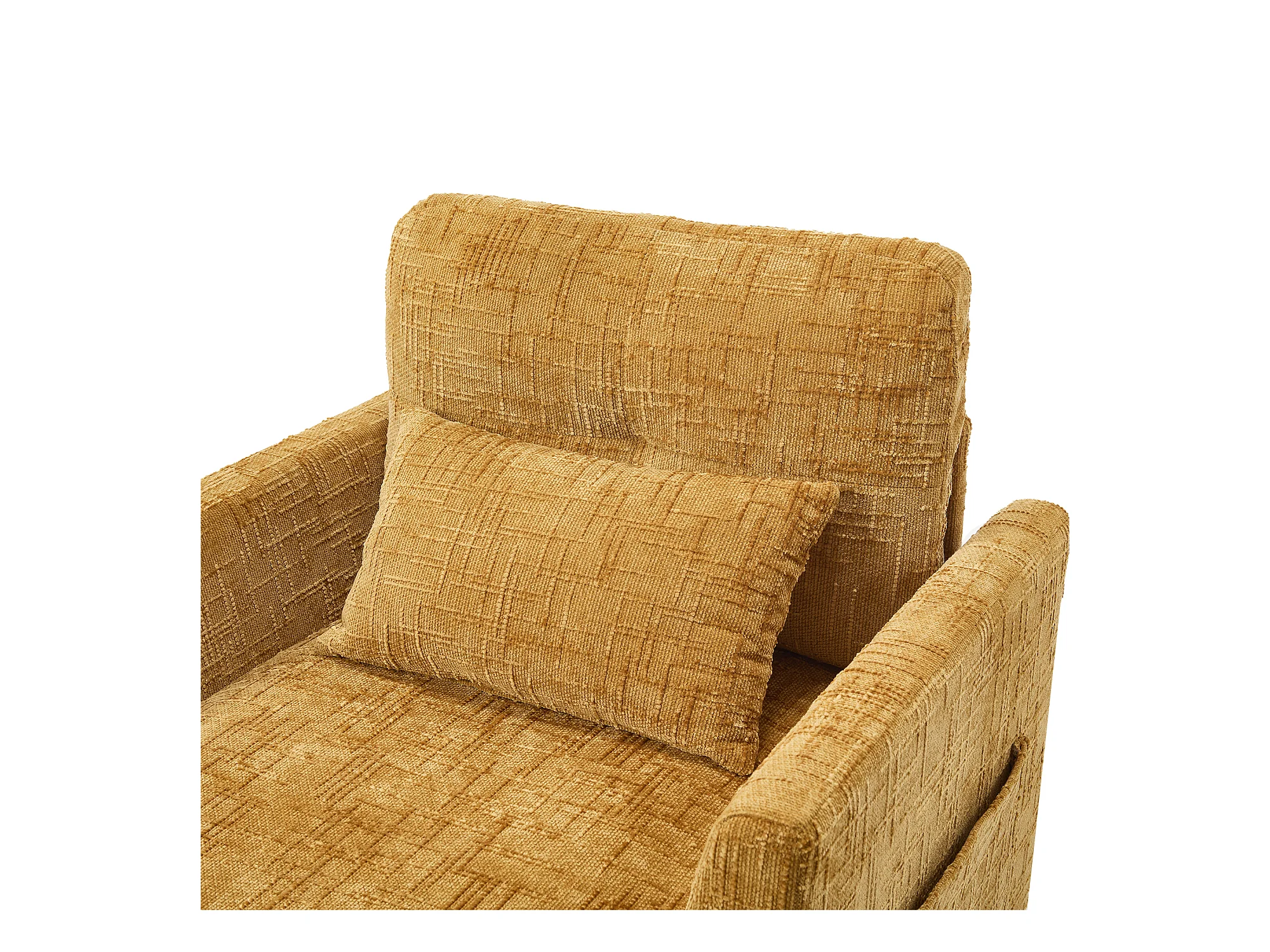 Canapé 1 place avec 2 poches latérales - Canapé de salon avec support pour téléphone et rangement dissimulé - chenille jaune