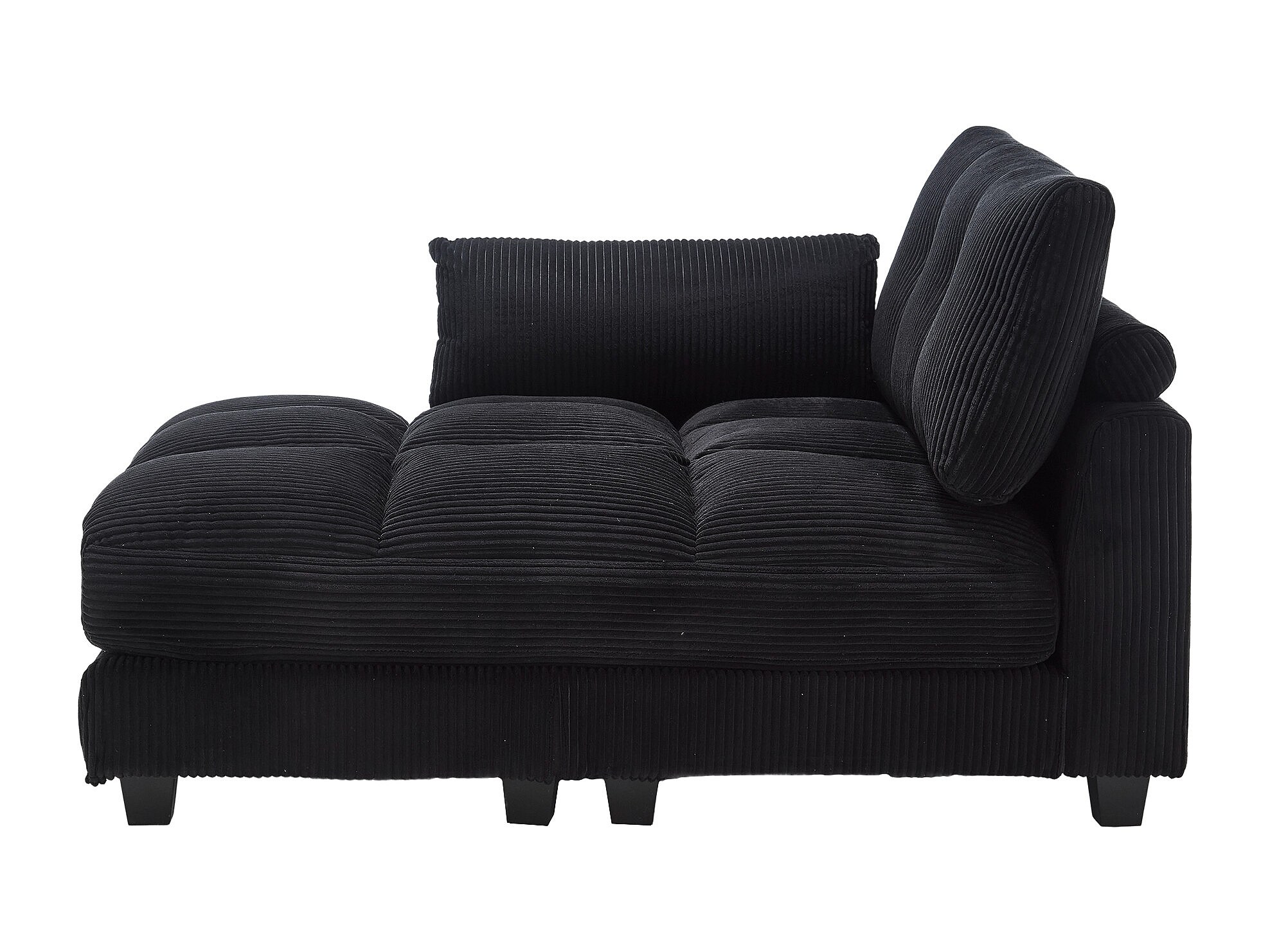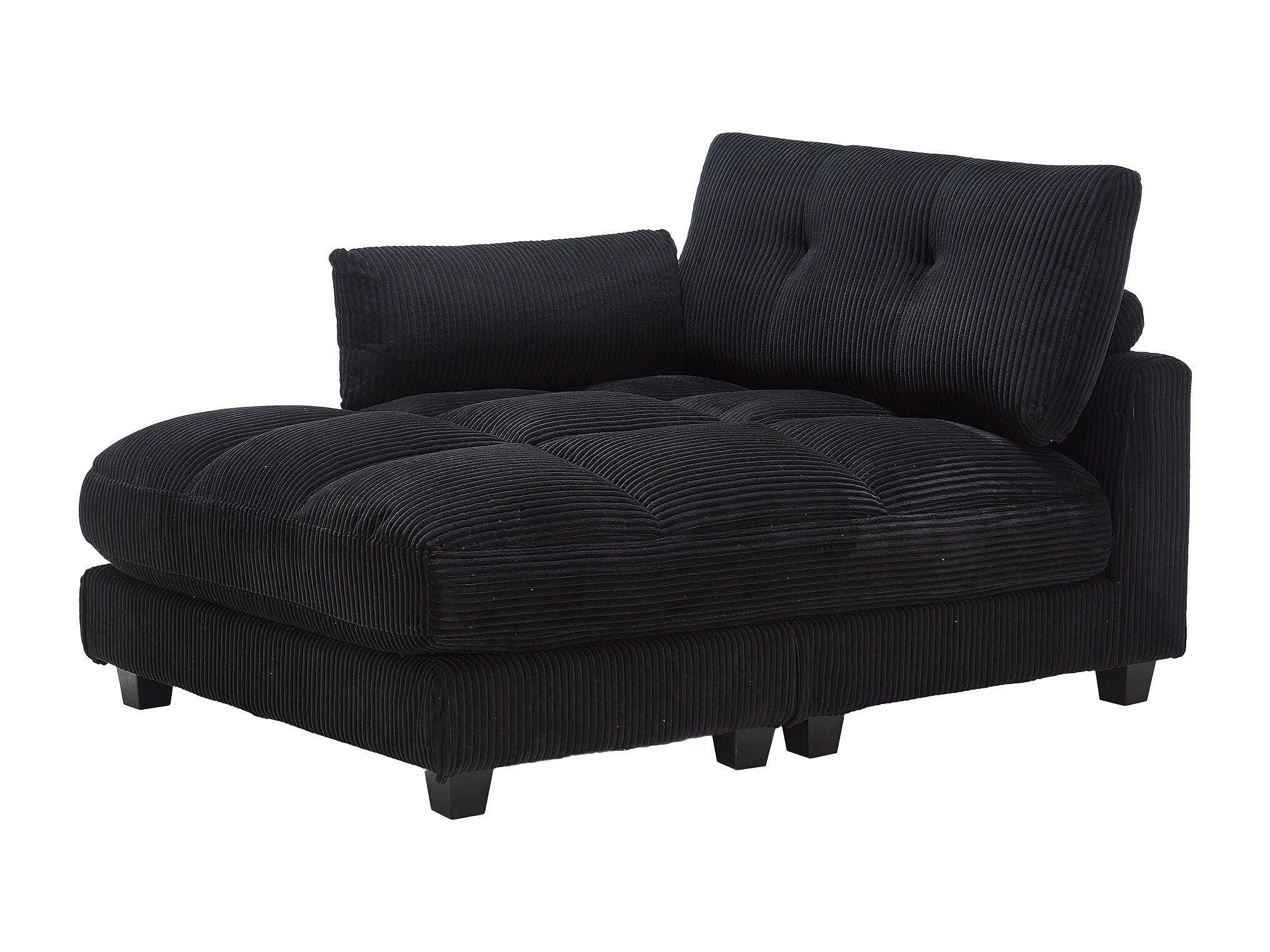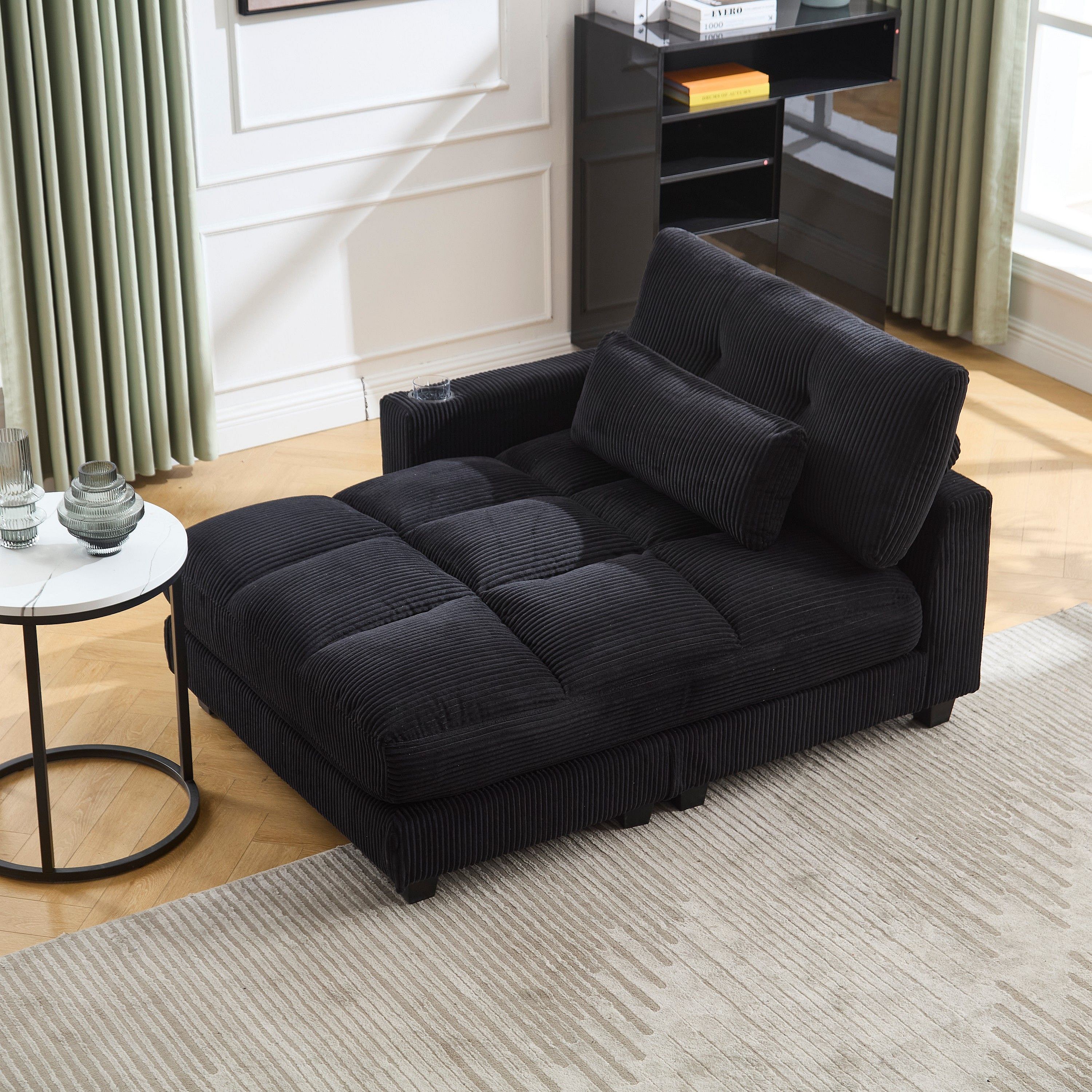 Canapé 1 place avec dossier rembourré, port USB et porte-gobelet - velours côtelé noir